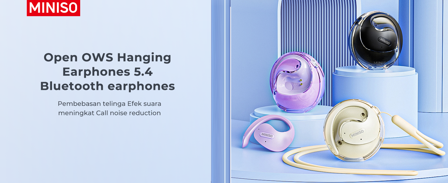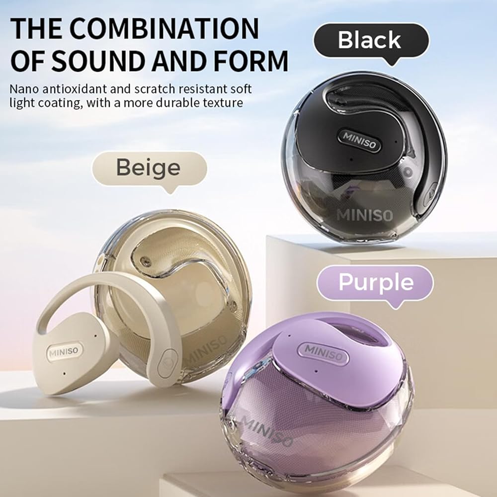 Miniso X15 Pro Open Open Ear Headphone Bluetooth 5.4 OWS معلقة سماعات أذن لاسلكية مع earhooks IPX5 مقاومة للماء يركض سبورت بلوتوث لركض ، القيادة الآمنة ، العمل الأرجواني (no ai))