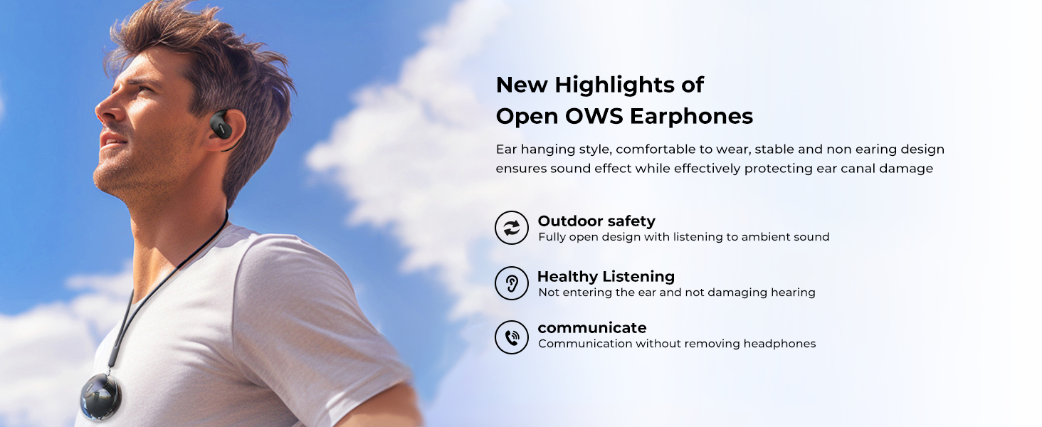 سماعات الرأس المفتوحة: لا تحتاج سماعات رأس Bluetooth المفتوحة إلى إدراجها في الأذنين ، وبالتالي فإن أذنيك مفتوحة دائمًا ، مما يتيح لك البقاء على اتصال مع البيئة المحيطة أثناء الاستمتاع بالموسيقى ، ويمكنها اكتشاف المخاطر المحتملة في الوقت المناسب. إنها مناسبة جدًا للاستخدام أثناء الرياضة أو القيادة أو العمل.