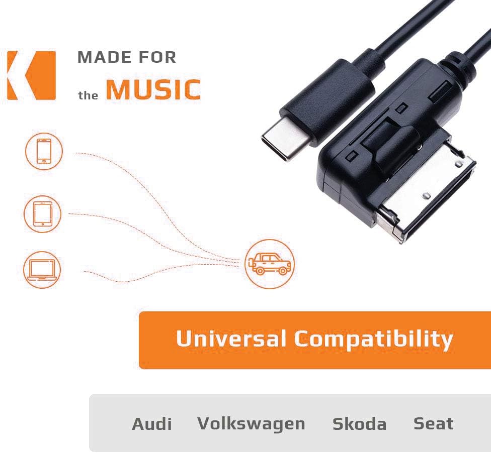 ◆ Simply connect this cable adaptor to your device which has a TYPE C female (mobile phone, tablet, player) to your AMI/MMI system. Select the wanted song on your connected device and press 'play' button. Enjoy full speed data communication between headunit and USB device. Rate: 44.1K/48K/96KHz, and16/24bits provides you real high fidelity audio, stable digital signal output, efficient and safe, no overheating