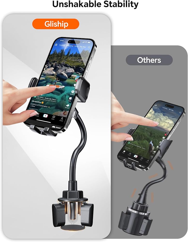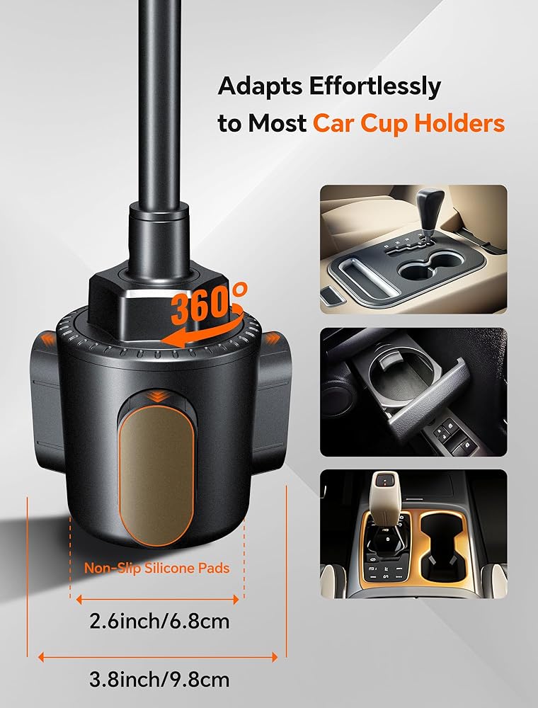 Don't need to affix anything to your dash or window, just simply put it in your car cup holder and fix.