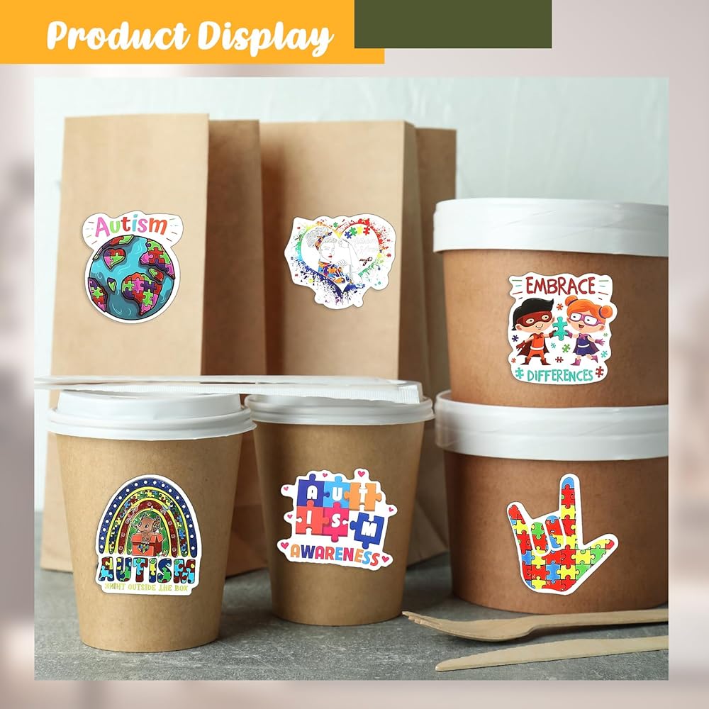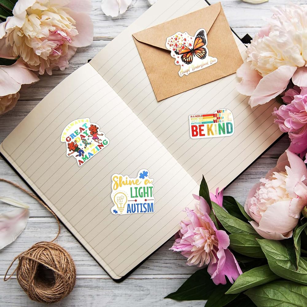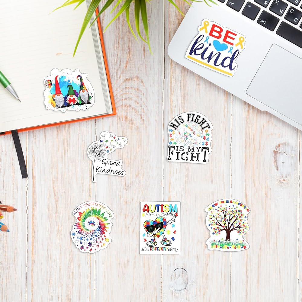 • Water Resistant Material: these autism awareness stickers are made of vinyl material, which has a nice waterproof effect, and the stickers have strong adhesion and will not fall off the scrapbook, and can withstand various weather conditions; They can be attached to water bottles, and can also be applied for vehicle exteriors, water bottles, helmets, mobile phone cases, suitcases, laptops, computers, diaries, cups, glasses, luggage, etc