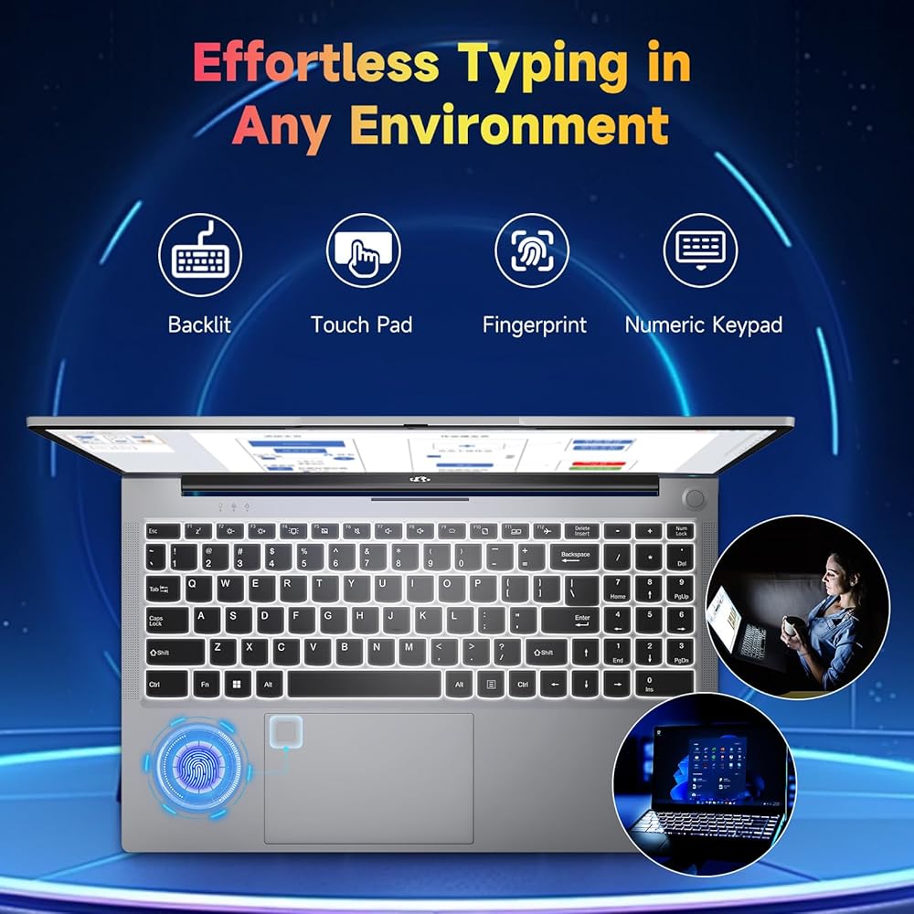 15.6 FHD LAPTOP ، WIN 11 LAPPOP INTEL 12th Gen N100 (Beat I3 1115G4) ، 16GB RAM 1TB SSD ، WIFI 6 ، BT5.2 ، USB3.0 ، TYPE_C ، كمبيوتر محمول مع لوحة مفاتيح تسجيل الدخول إلى البصمات للطالب والأعمال التجارية