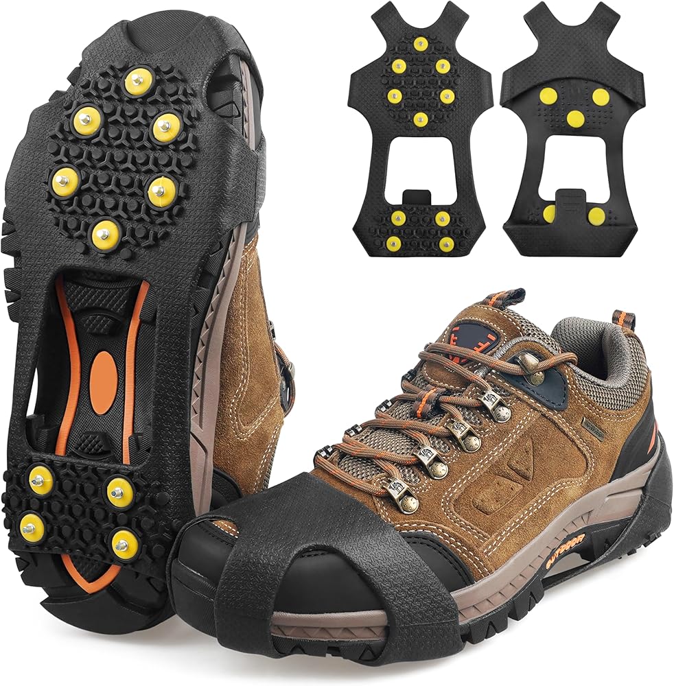 يوفر مرابط الثلج ذات الأداء الجيد مع 11 ترصيعًا قويًا غير متكرر مصنوع من الفولاذ المقاوم للصدأ ، وبلغ 360 درجة لا مثيل له على الثلج الشتوي والثلج. تساعدك مرابط أحذية الثلج على المشي والجري والعمل بثقة أكبر في ظروف الشتاء الزلقة دون القلق بشأن الانزلاق