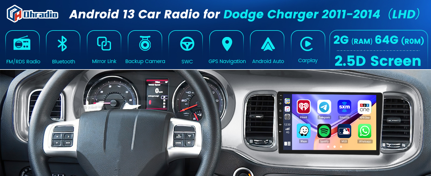 carplay اللاسلكية/السلكية CarPlay & Android Auto & Mirror include recod android Radio to Dodge Charger مدمج في Carplay/Wired Wired و Android Auto. ما عليك سوى توصيل راديو الشاشة التي تعمل باللمس بهاتفك الذكي عبر Bluetooth أو كبل بيانات USB الأصلي للاستمتاع بالاتصال السلس ، والوصول إلى تطبيقات الهاتف الذكي والميزات والاستمتاع بتنسيق GPS ، والرسائل ، والبريد الإلكتروني ، للحفاظ على يديك مجانًا واصل التركيز على الطريق
