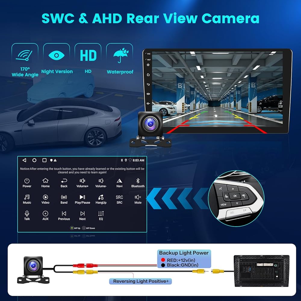 【التحكم في عجلة القيادة وكاميرا النسخ الاحتياطي AHD】 عزز تجربة القيادة الخاصة بك لشاحن دودج مع أزرار عجلة القيادة المصممة للتحكم المريح والآمن لراديو Android. تضمن كاميرا الرؤية الليلية المقاومة للماء صور عكسية واضحة ، مما يوفر مساعدة موثوقة للسيارات ، مفيدة بشكل خاص لمواقف السيارات الليلية. التبديل التلقائي السلس إلى الصورة العكسية عند النسخ الاحتياطي ، ومساعدتك على الوقوف بأمان وتجنب العقبات