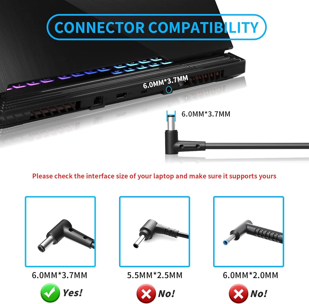 استبدال شاحن الكمبيوتر المحمول ASUS 180W: الإدخال: 100-240V 50-60Hz ، الإخراج: 20V 9A 180W (متوافق مع 150W) ، حجم الموصل: 6.0 مم*3.7 مم. يرجى تأكيد مواصفات محول الطاقة ASUS الخاص بك قبل الطلب