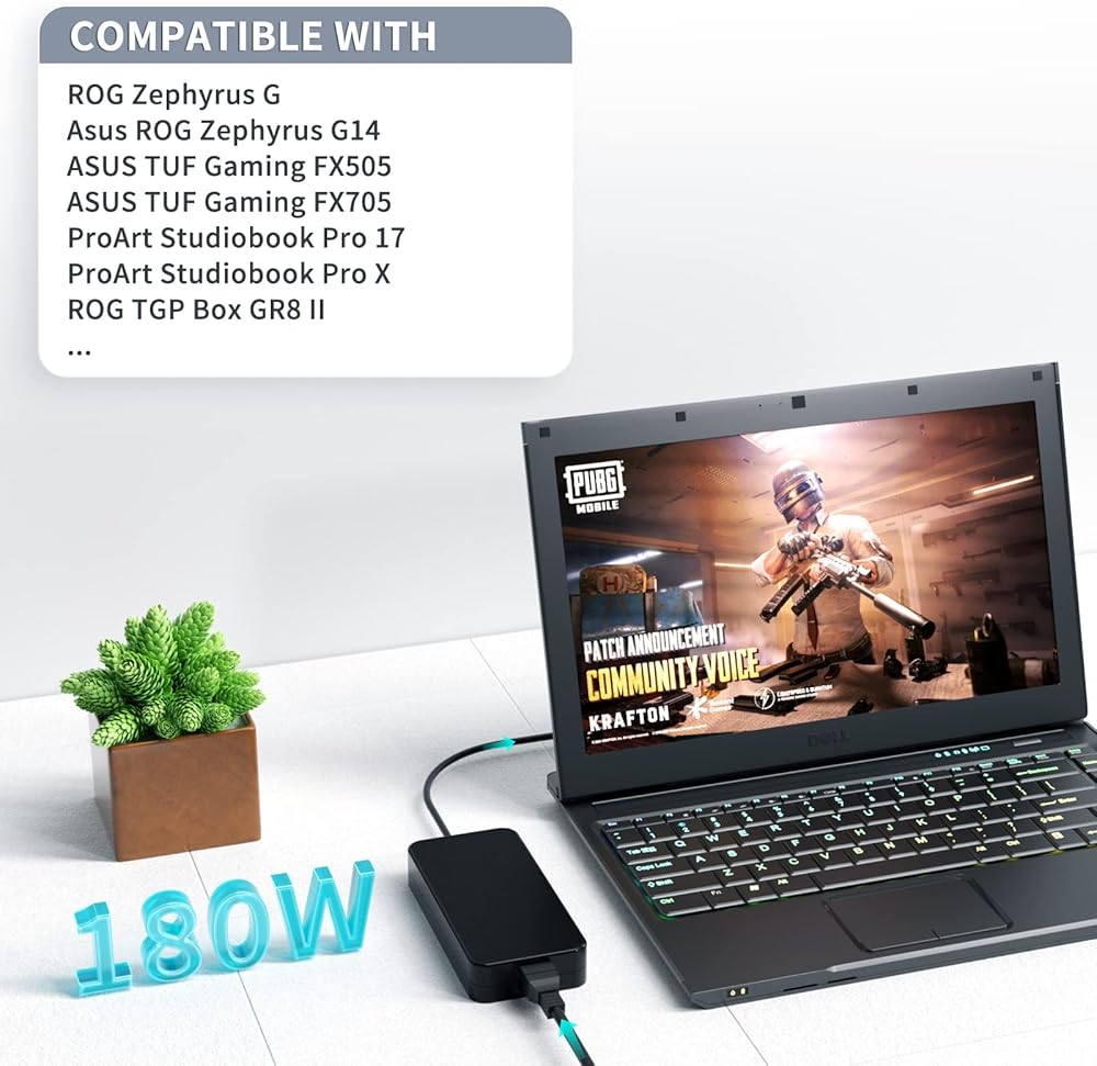 متوافق مع جهاز الكمبيوتر المحمول ASUS: بديل لمصدر الطاقة 180W متوافق مع ASUS TUF FX705D FX705DT FX705DU FX705DY FX705DD FX705G FX705GD FX70GM FX505GT FX505GD FX505GE ، ASUS ROG ZEPHYRUS G GA502 GA502D GA502DU ، ASUS TUF Gaming A15 A17 F15 F17 سلسلة ألعاب الكمبيوتر المحمول