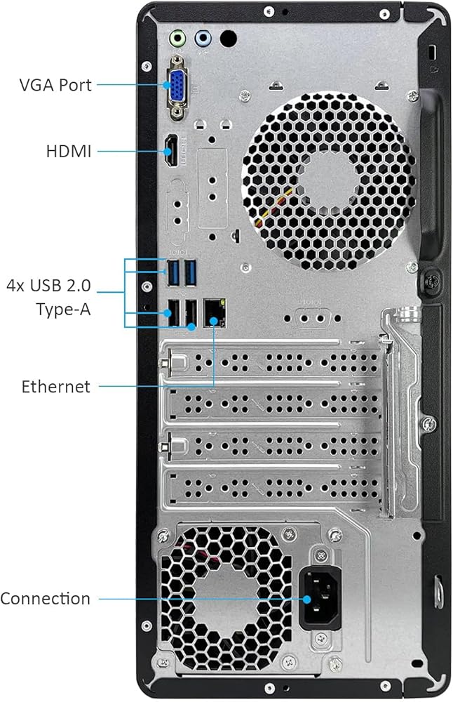 1 HDMI; 1 VGA; 4 USB Type-A 2.0; 1 RJ-45