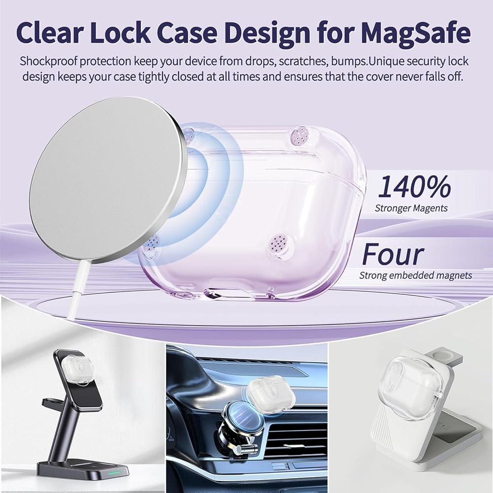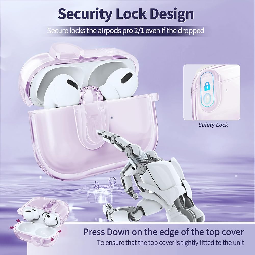 ✦CLEAR&LOCK DESIGN✦ Transparent TPU material showcases the original AirPods while providing reliable protection against scratches and drops. The integrated lock helps prevent accidental opening and keeps your AirPods Pro 2/1 secure