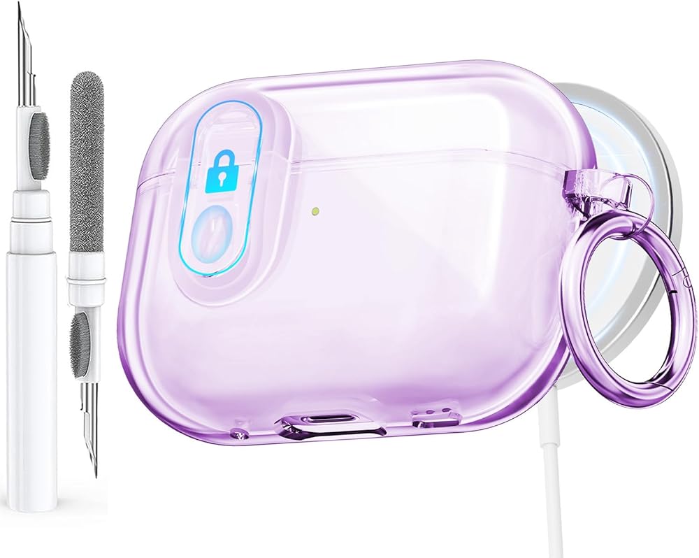 حالة واضحة لـ AirPods Pro 2nd/1st Generation مع قفل ، Magsafe الجهد ، TPU الناعم Apple Airpod iPod Pro Cover 2nd/1st Gen 2023/2022/2019 مع مجموعة Cleaning و Keychian ، الأرجواني ، الأرجواني