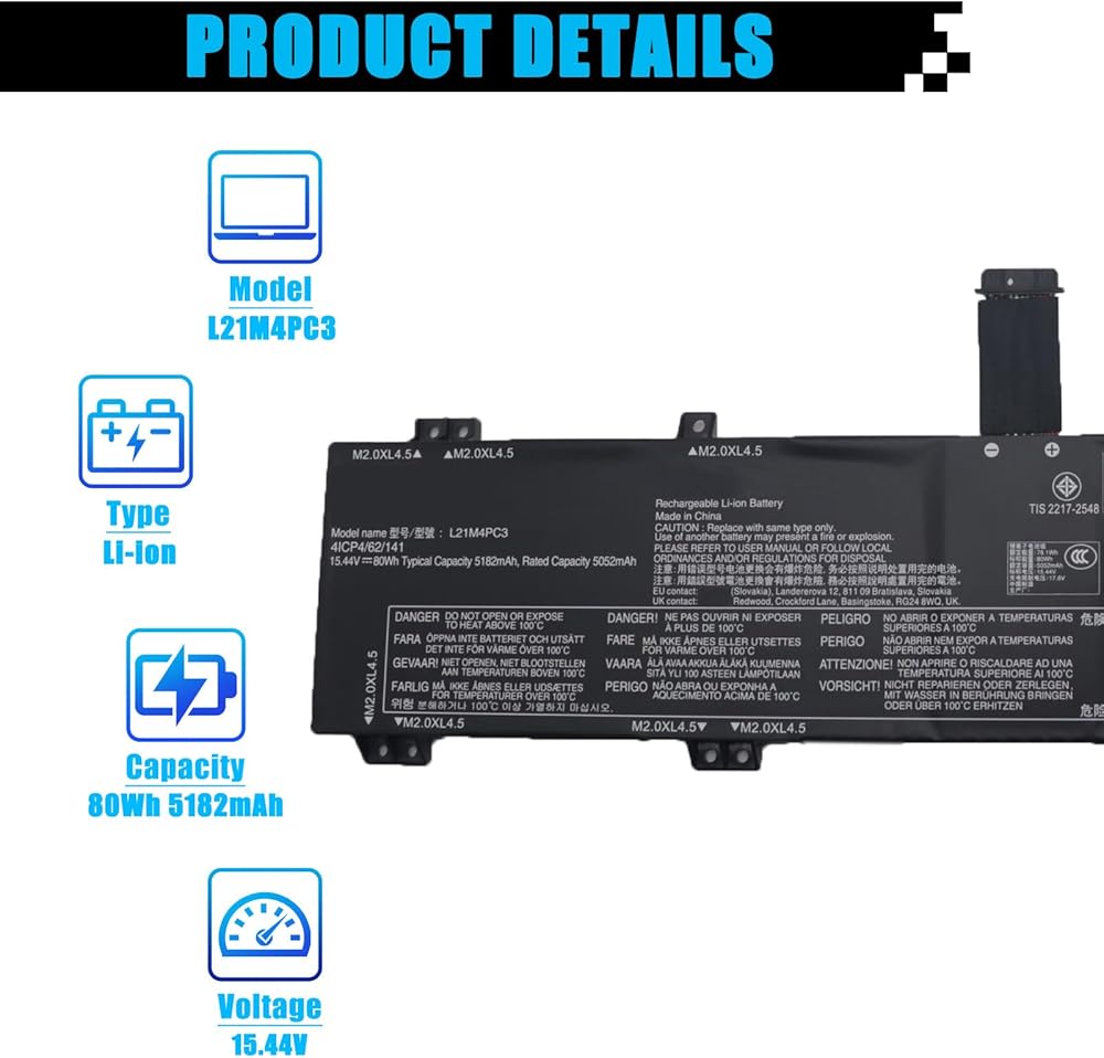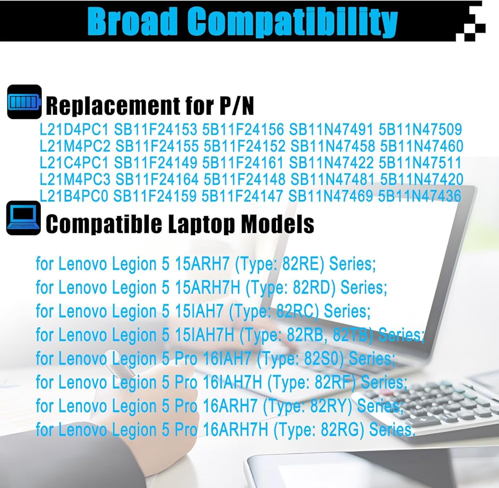 L21M4PC3 استبدال بطارية الكمبيوتر المحمول لـ Lenovo Legion 5-15ARH7 5-15ARH7H 5-15IAH7 5-15IAH7H LEGION 5 PRO 16IAH7 16IAH7H 16ARH7 16ARH7H SERIES L21M4PC2 L21D4PC1 L21C4PC1