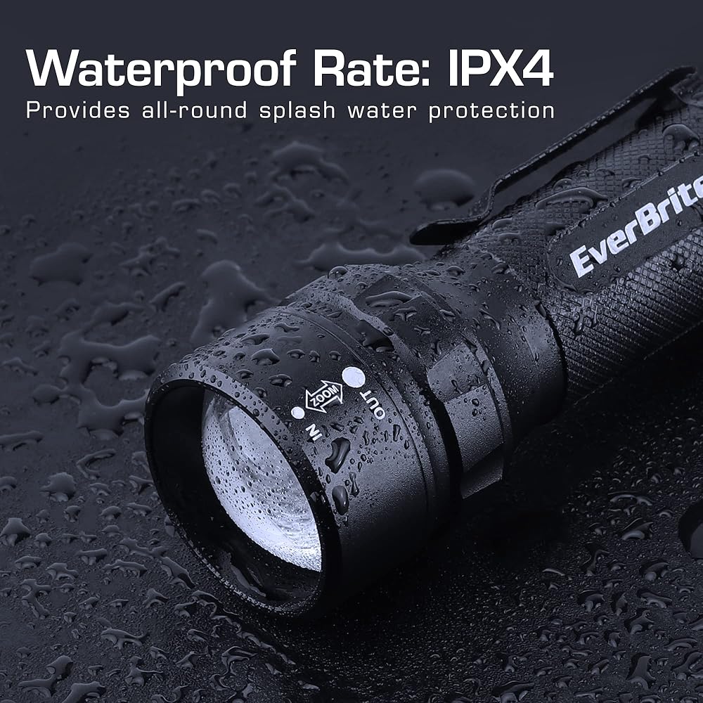 Everbrite 400 Lumens المصباح المصباح المصباح المصباح المصباح ، مصباح يدوي قابل للتكبير مع الحبل والمقطع ، 4 أوضاع ، مقاومة للماء IPX4 ، للتخييم ، الطوارئ ، EDC ، استخدام البقاء ، البطاريات المشمولة