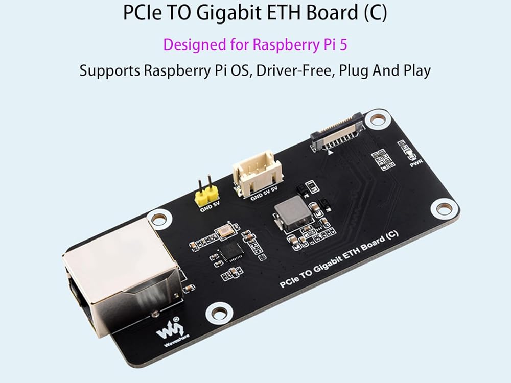 PCIE to Gigabit ETH Board for Raspberry PI 5 ، يدعم Raspberry PI OS ، قابس وتشغيل خالي من السائق ، محول Raspberry Pi 5 PCI