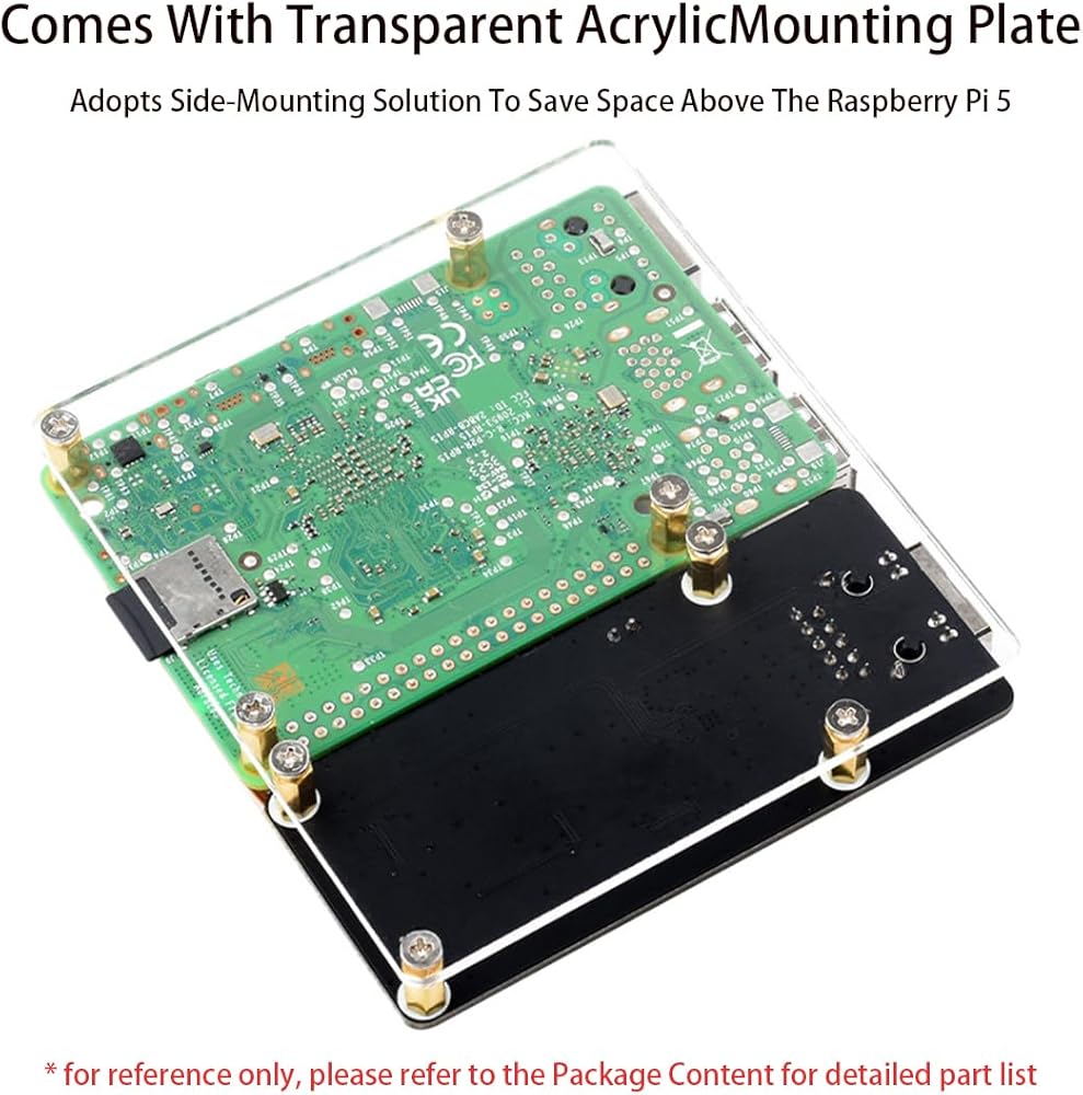 - يأتي مع لوحة تثبيت الأكريليك الشفافة --- تعتمد الحل الجانبي لتوفير مساحة فوق Raspberry Pi 5