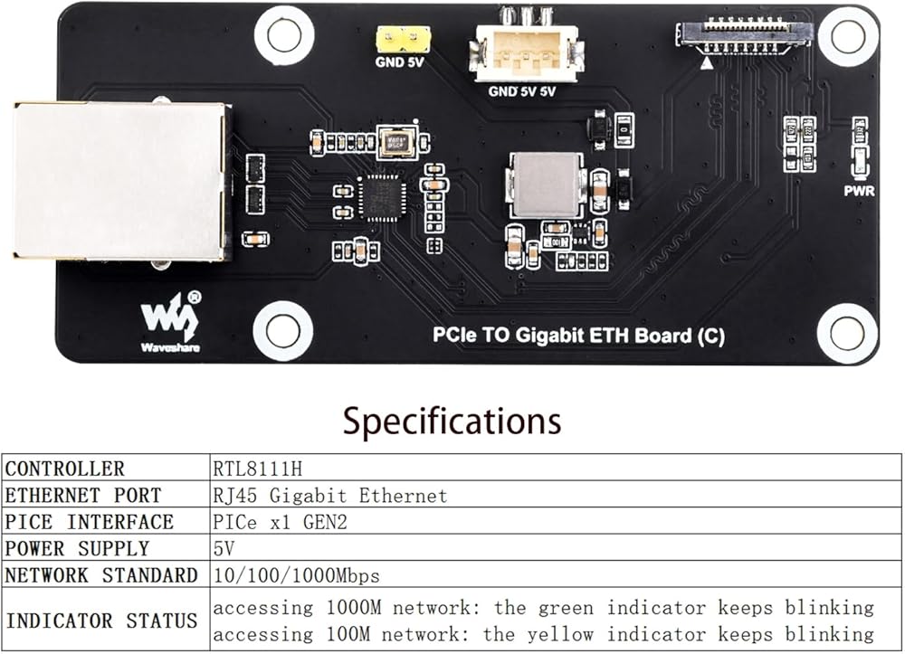 - بالنسبة إلى Raspberry PI 5 --- PCIE إلى Gigabit ETH Board (C) للتوت PI 5 ، يدعم Raspberry PI OS ، خالية من السائق ، محول التوت PI 5 PCI
