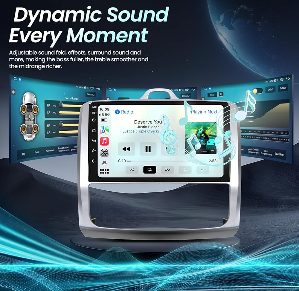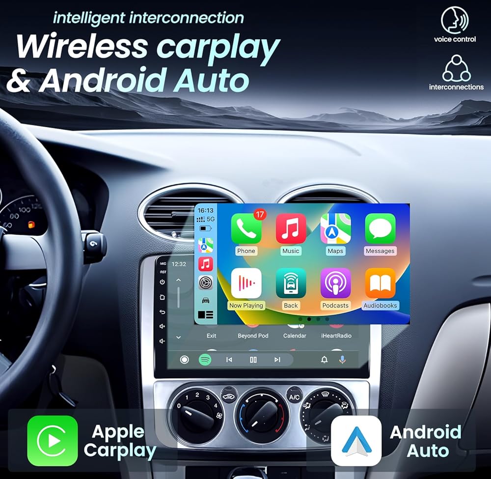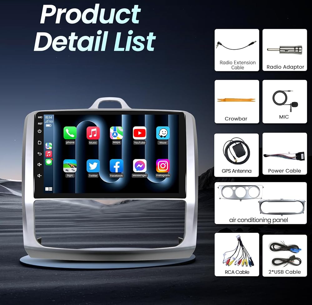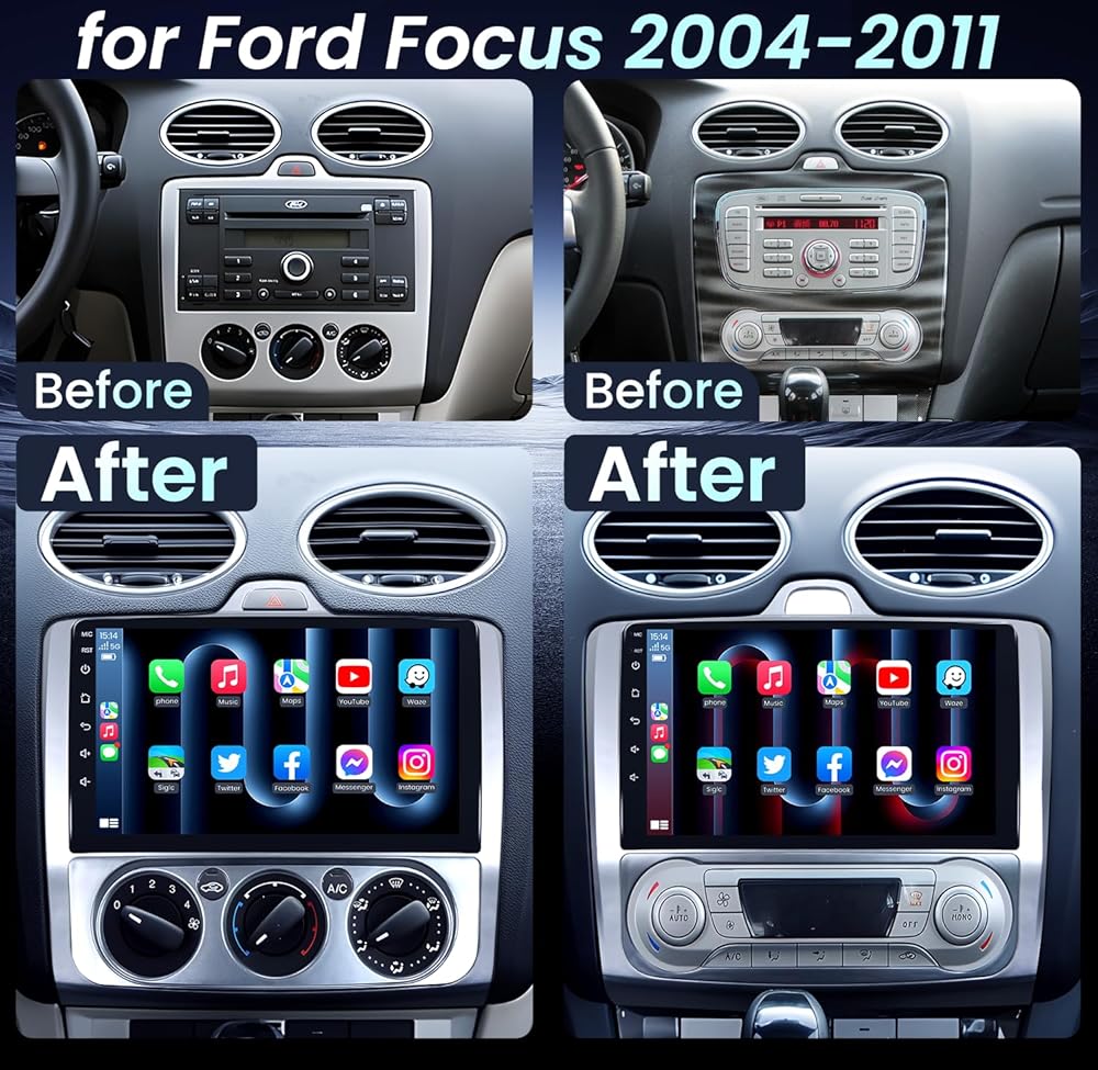 استريو لراديو السيارة ل Ford Focus 2004-2011: [1280 * 800 HD] [2+32g] 9 "استبدال وحدة رأس الشاشة اللمس بكاميرا احتياطية-ترقية 5G WiFi WIRELESS CARPLAY GPS DSP FM SWC