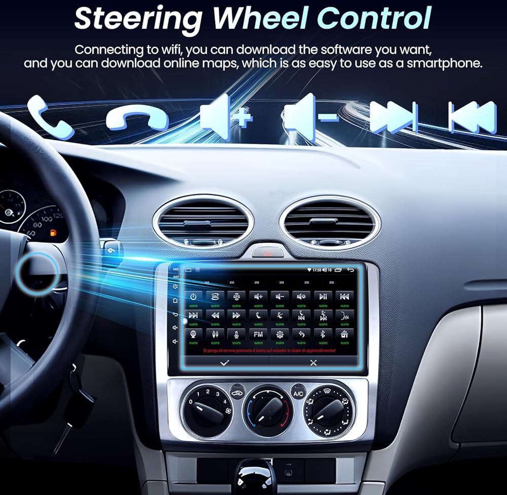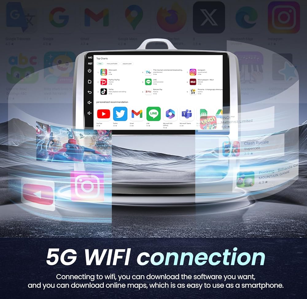 • 【5G WiFi & Offline GPS】 ابق على اتصال مع 5G-WIFI فائق السرعة ، مما يتيح دفق الوسائط السريعة والوصول عبر الإنترنت. يحتوي استبدال Radio Focus على جهاز استقبال GPS مدمج ومتوافق مع خريطة Waze و Navfree. حتى بدون الإنترنت ، لا يزال بإمكانك الانتقال إلى وجهتك مع التنقل في وضع عدم الاتصال. ابق على اتصال أثناء القيادة مع المكالمات الواردة والصادرة ، ومزامنة دفتر العناوين ، وتشغيل موسيقى الهاتف المحمول
