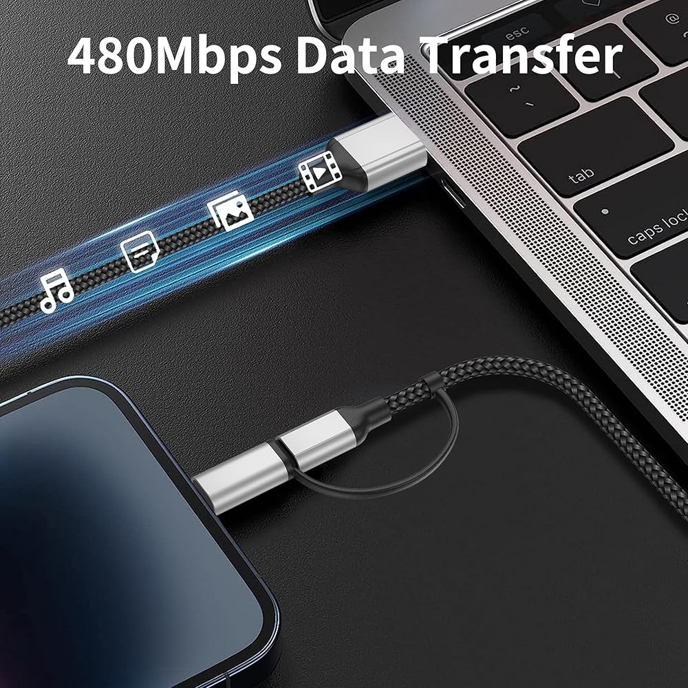 • Fast Charge & Data Sync: يدعم كابل USB A إلى USB C/Lightning 5 أقدام الشحن السريع 3.0/2.0 للشحن السريع بحد أقصى 60 واط. يحمي مقاوم 56KΩ المدمج أجهزتك من التلف. يلتزم بمعايير USB 2.0 لسرعة نقل البيانات تصل إلى 480 ميغابت في الثانية (60 مترًا/ثانية).