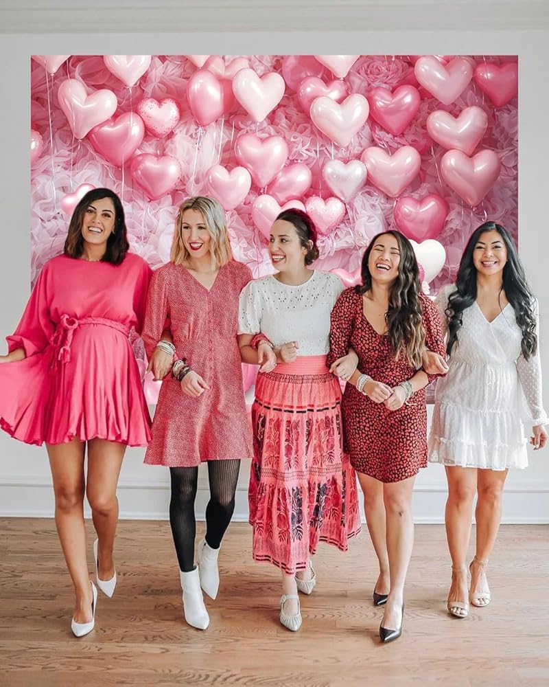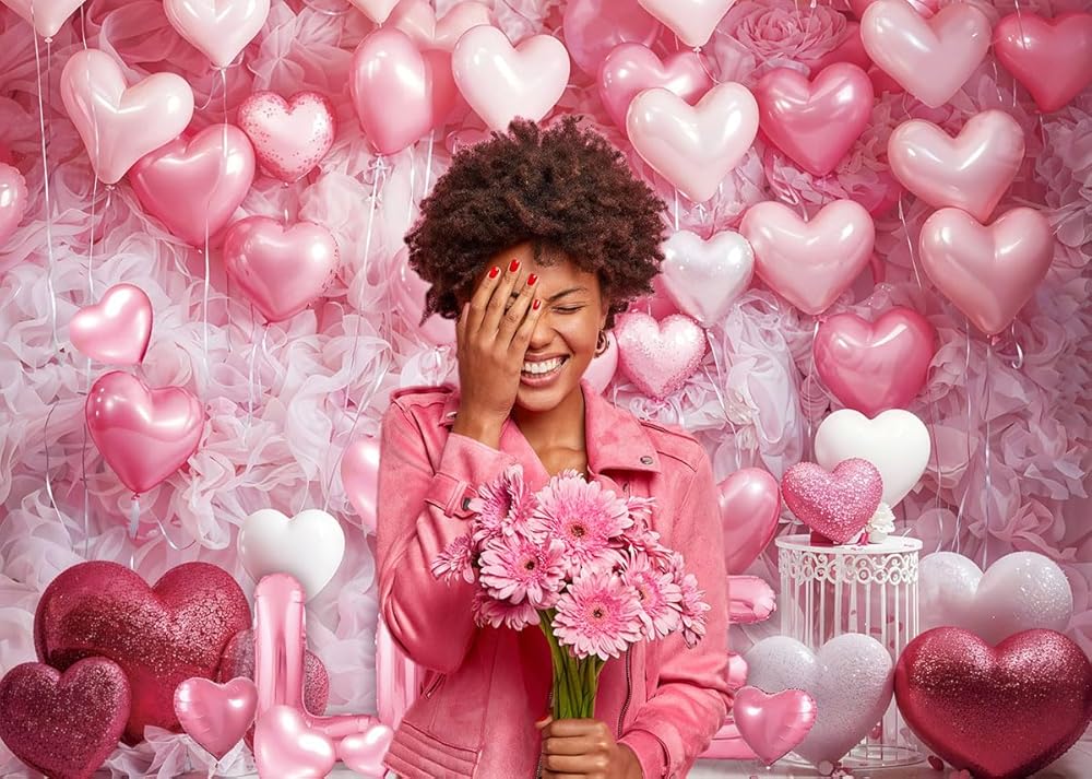 【خلفية القلب الوردي】: الموضوع هو زخرفة بالون حمراء على شكل قلب تستخدم كخلفية لافتة للاحتفال بعيد الحب. الزخرفة فريدة من نوعها وتسلط الضوء على الجو الاحتفالي.