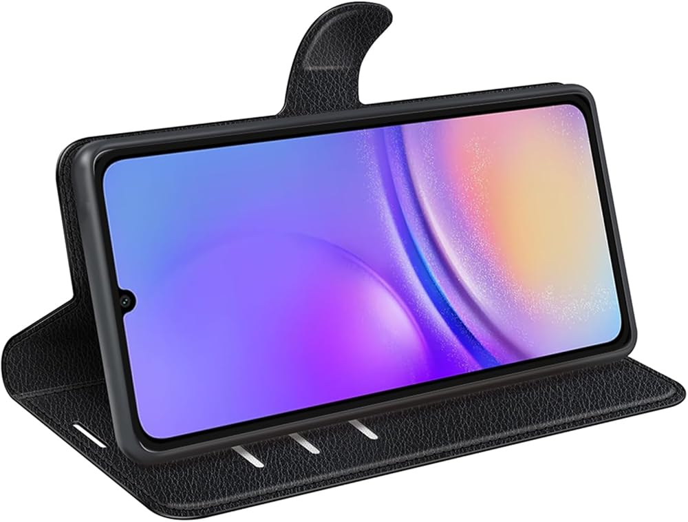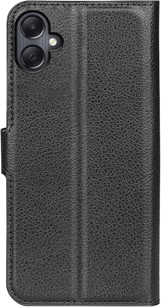 علبة فليب لـ Samsung A06 PU PU GEATHER SELPERTERS MAVERSION SAMSUNG GALAXY A06 4G LTE A065M FOLIO COOVE مع حامل (أسود)