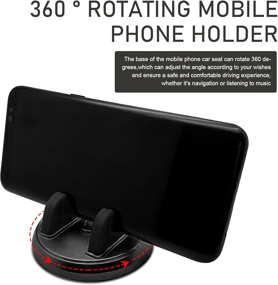 Tippwoo 1 PC Car Phone Mount, Dashboard Phone Holder for Car, 360° Rotatable Mobile Phone Holder, Navigation Holder for Various Dashboards, Slip Free Desk Phone Stand (Black)