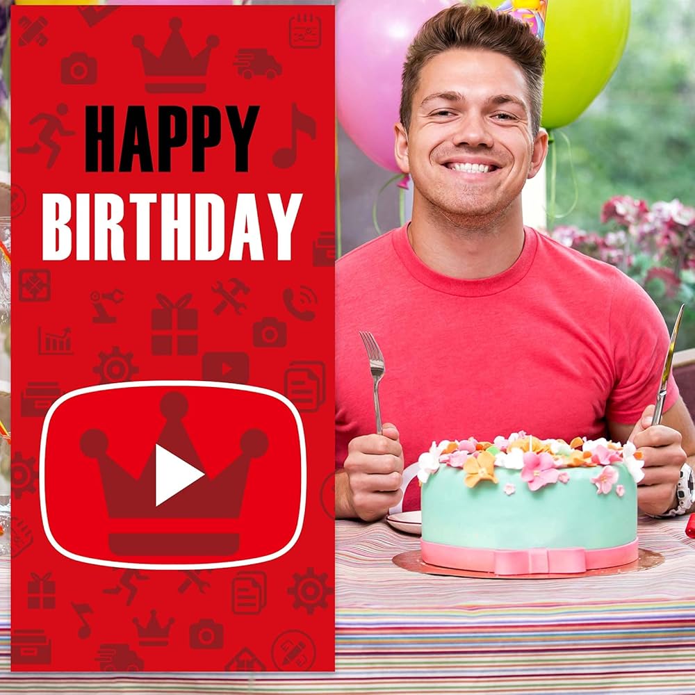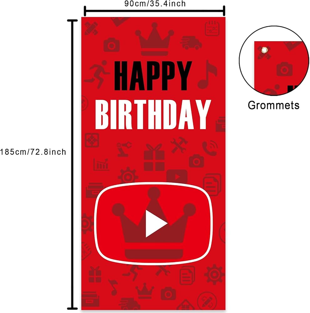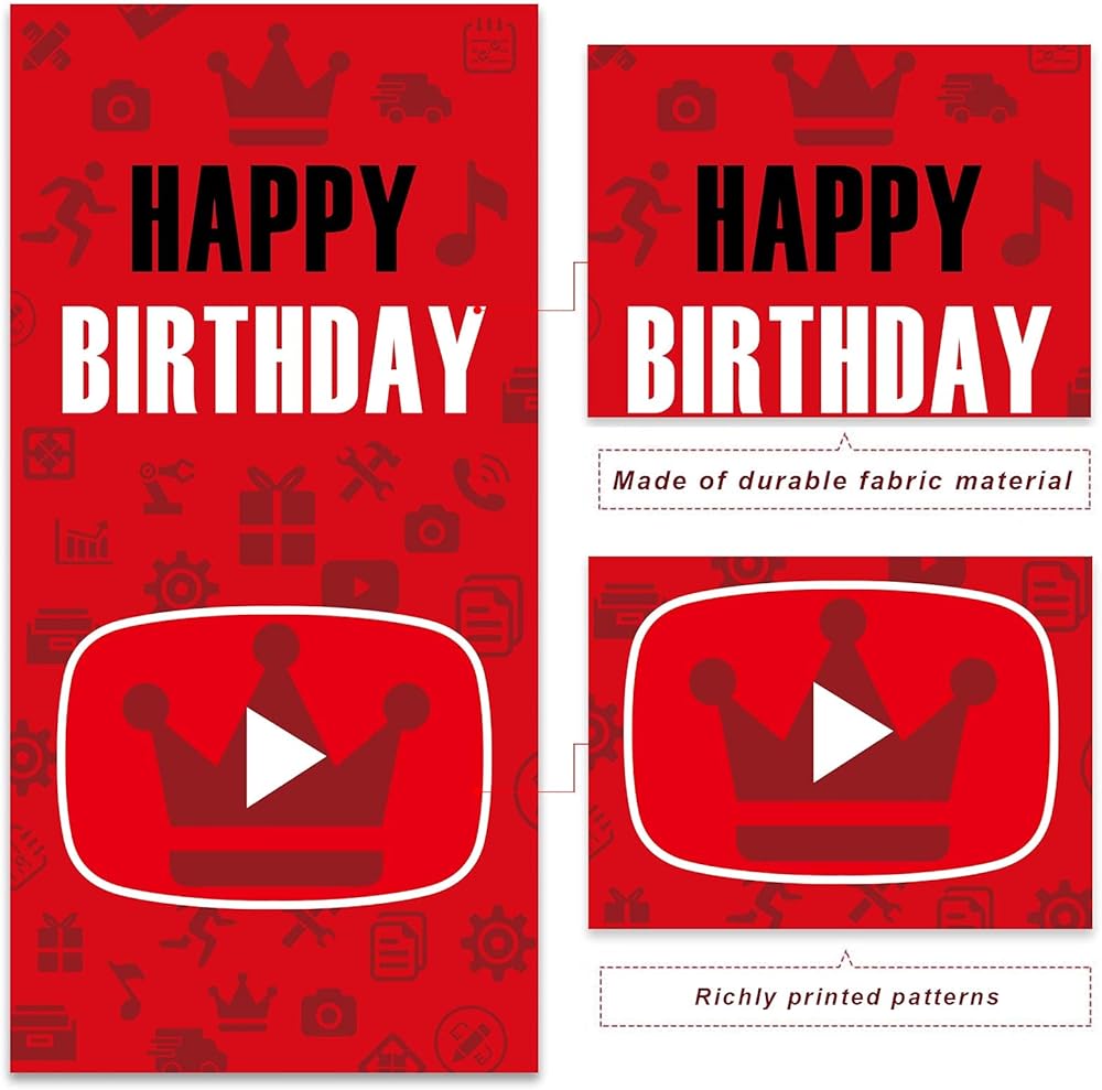 قم بتشغيل وسائل التواصل الاجتماعي Red and Black Happy Happy Banner Banner Backdrop Music Movie Movie Mostme Cinema Play Pattern Decoration Decority Decord For Birthday Party Party Baby Shower Supplies Proform