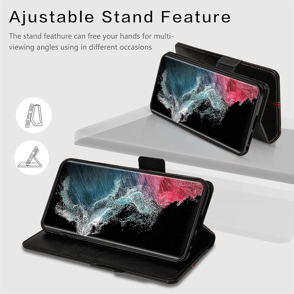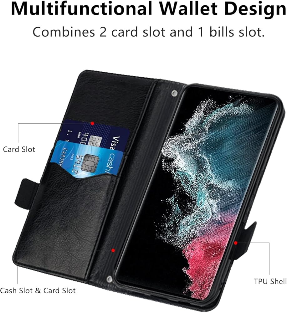 بالنسبة إلى Samsung Galaxy S23 Ultra 5G Case ، فتحات البطاقة الجلدية المغناطيسية S23 Ultra 5G Wallet Phone Case ، Flip TPU Pumper Protection مع Kickstand ، علبة الورقة المقاومة للصدمة لـ Samsung S23 Ultra Black