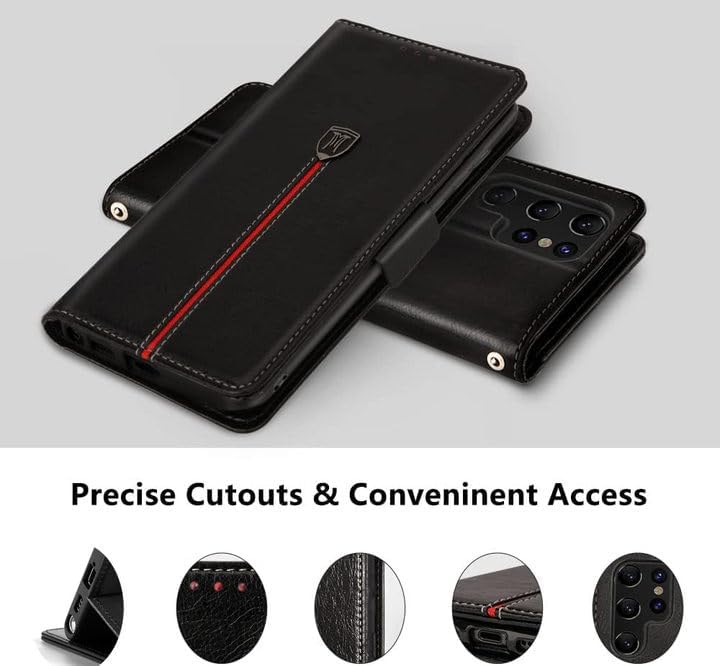 【النماذج المتوافقة】 مصممة خصيصًا لـ Samsung Galaxy S23 Ultra 5G. من السهل الوصول إلى جميع المنافذ والأزرار ، مكبر الصوت ، الكاميرا ، حامل S-PEN ، واجهة الشحن في القواطع الدقيقة المصنوعة من صب الدقة. التصميم الجلدي يجعل هاتفك يبدو فاخرًا حتى أكثر جاذبية.