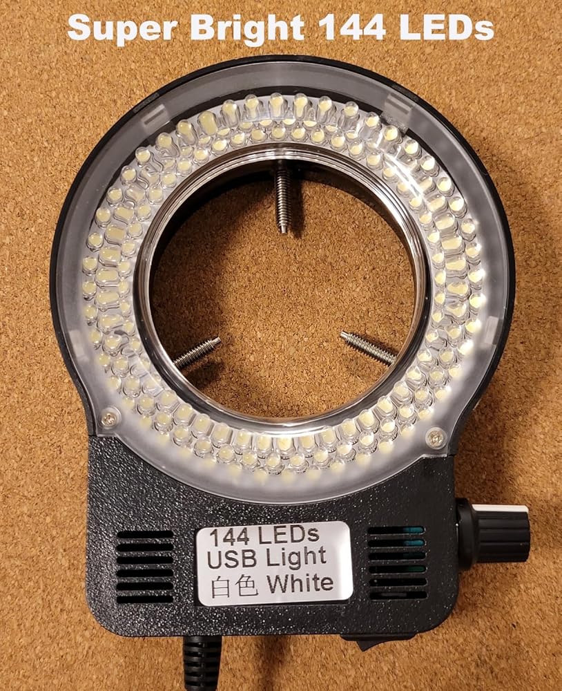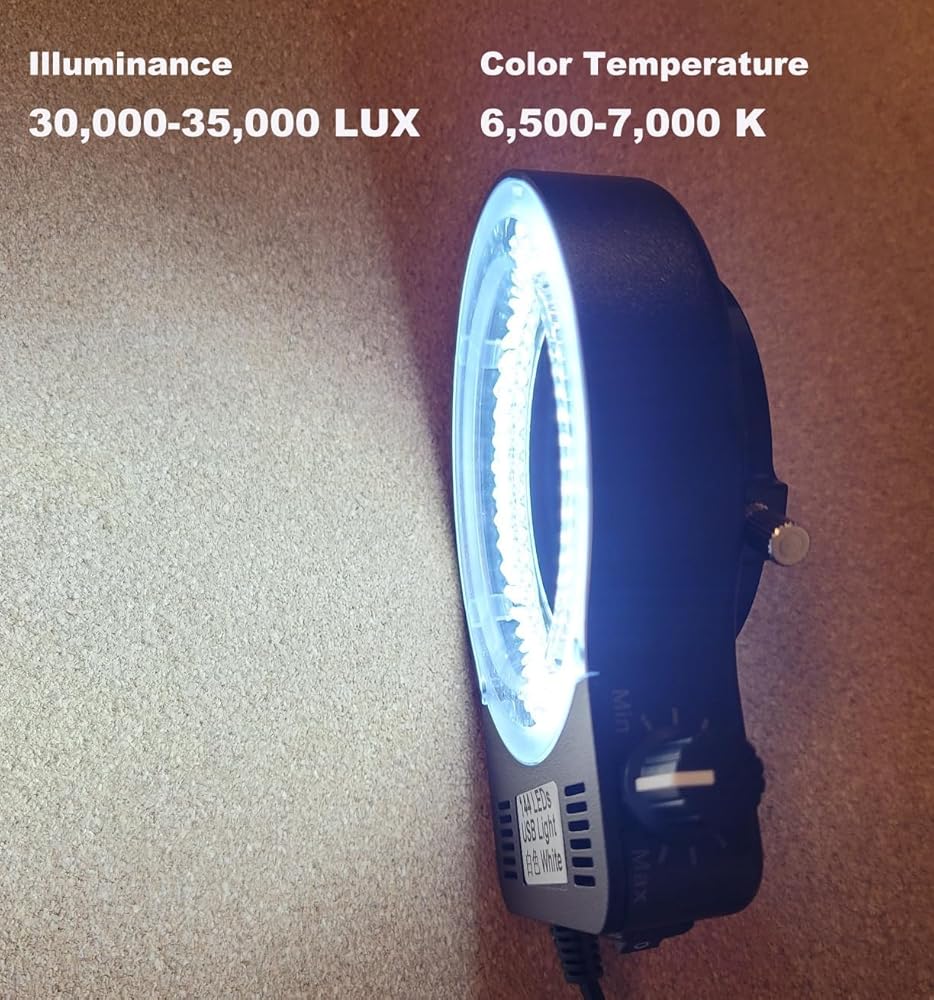 Powerful Lighting: Equipped with 144 high-quality LEDs, this microscope light provides bright illumination, illuminance ranging 30,000-35,000LUX, harmless to eyes
