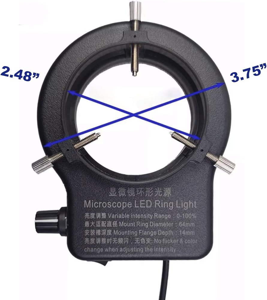 Working Distance: Microscope ring light designed for optimal performance at a distance of 1.6 to 6.2 in (40-160mm)