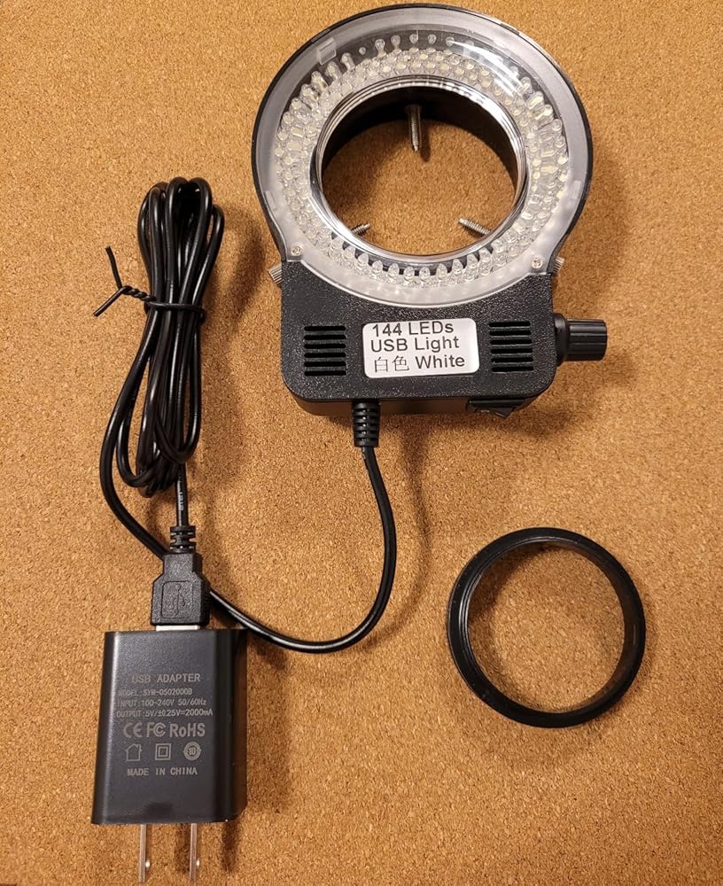 Microscope Light, LED Microscope Ring Light, 144 LEDs Bright Adjustable Ring Light Lamp, Industrial Light Source for Monocular Binocular Trinocular Stereo Microscope Camera