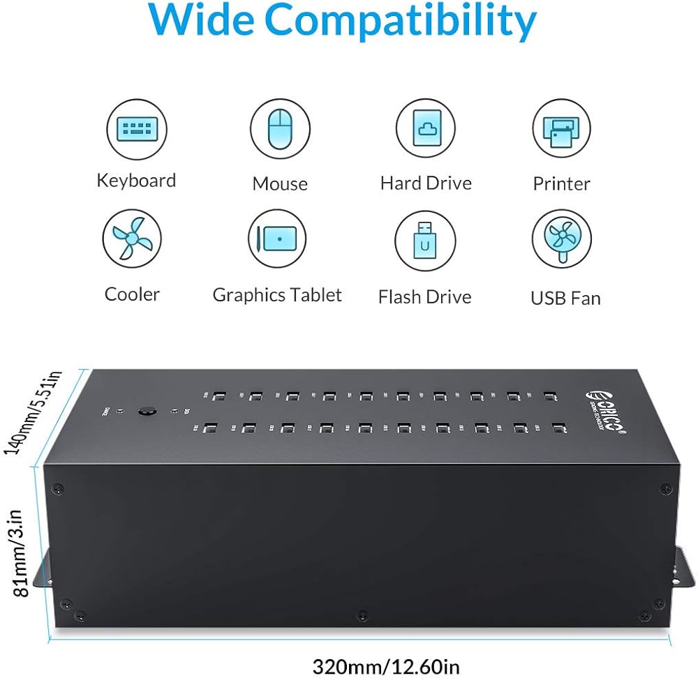 【300 واط مزود الطاقة المتكامل】 مزود بمصدر طاقة مستقل 300 واط ، يضمن محور USB الصناعي هذا أداءً مستقرًا حتى عندما تكون جميع المنافذ الثلاثين قيد الاستخدام ؛ يوفر توزيع طاقة موثوق به للأجهزة المتصلة ، بما في ذلك الهواتف الذكية والأجهزة اللوحية وغيرها من المعدات التي تعمل بزعم USB