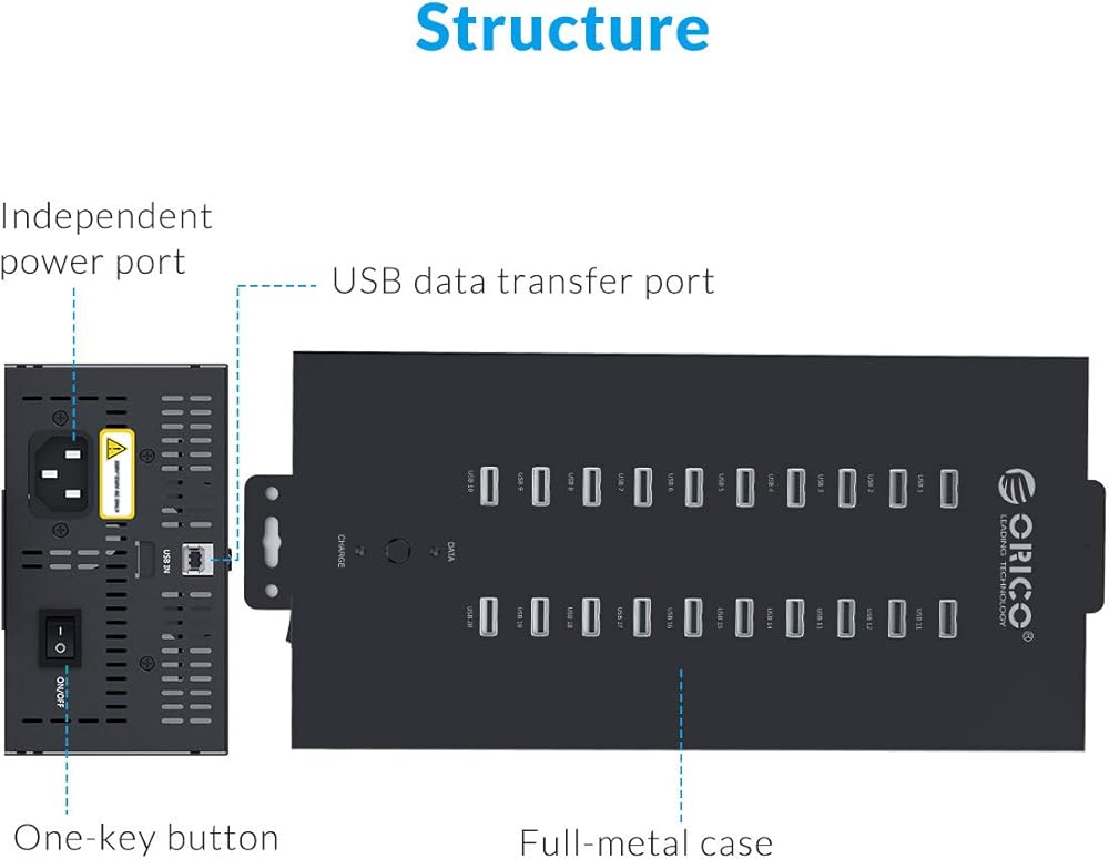 【توسع USB 30 منفذ】 مزامنة وشحن ما يصل إلى 30 جهاز USB في وقت واحد ؛ تم تصميمه لبيئات متطلبة مثل مختبرات اختبار المنتجات ومحطات الإصلاح وقاعات المؤتمرات ومحطات العمل المكتبية ، وقد تم تصميم محور USB متعدد المعادن مع سكن معدني صناعي وعرة ؛ وهو يدعم نقل البيانات بالجملة وشحن الجهاز ، مما يجعله مثاليًا لعمليات عالية الكفاءة