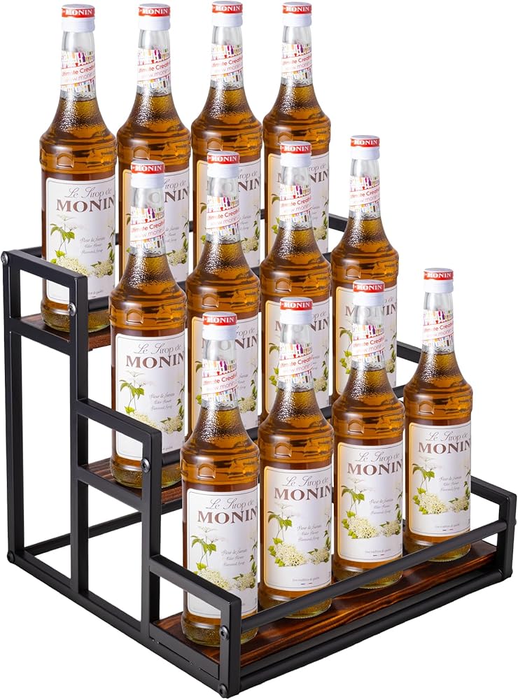 • Widely Used: 3 tier coffee syrup rack can keep 12 Torani and Monin Syrup bottles (25.4 oz/750 ml), and other kitchen containers or bottles like olive oil and vinegar