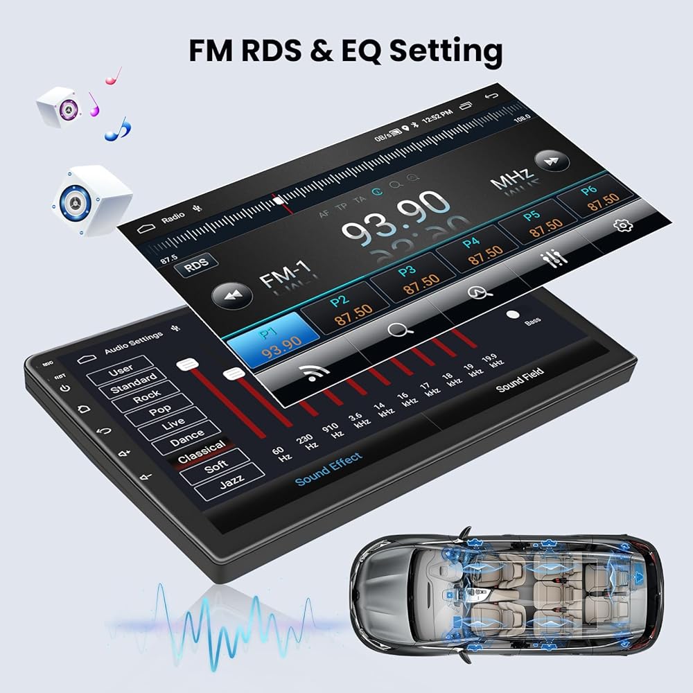 تقسيم الشاشة ، FM RDS و EQ: تتيح لك ميزة الشاشة المقسمة استخدام التنقل والموسيقى في وقت واحد ، إلخ. يوفر 53 موضوع واجهة المستخدم لتناسب تفضيلاتك. راديو FM عالي الجودة مع RDS ، ودعم 18 محطة ، والموسيقى ، ومعلومات حركة المرور ، والتوقعات الطقس ، وما إلى ذلك.