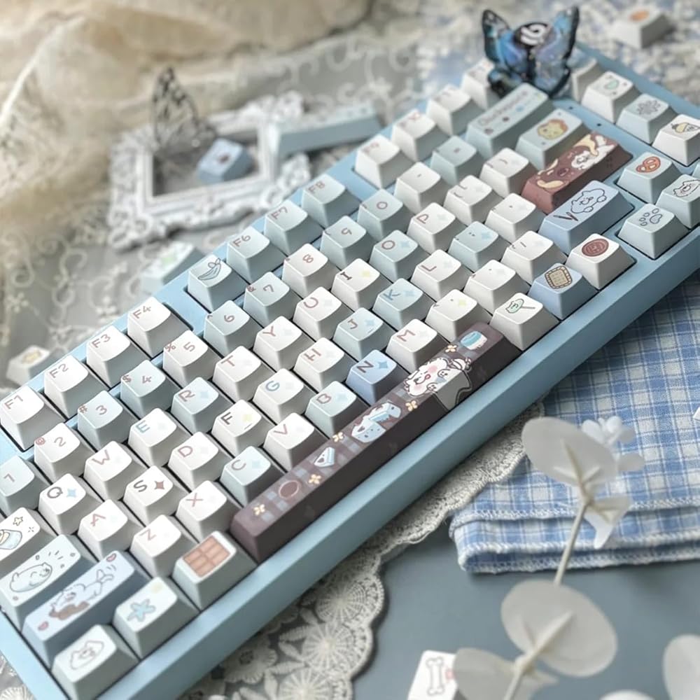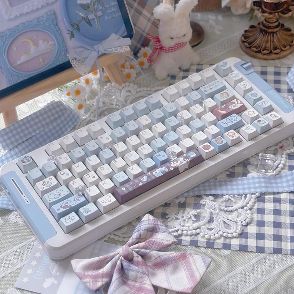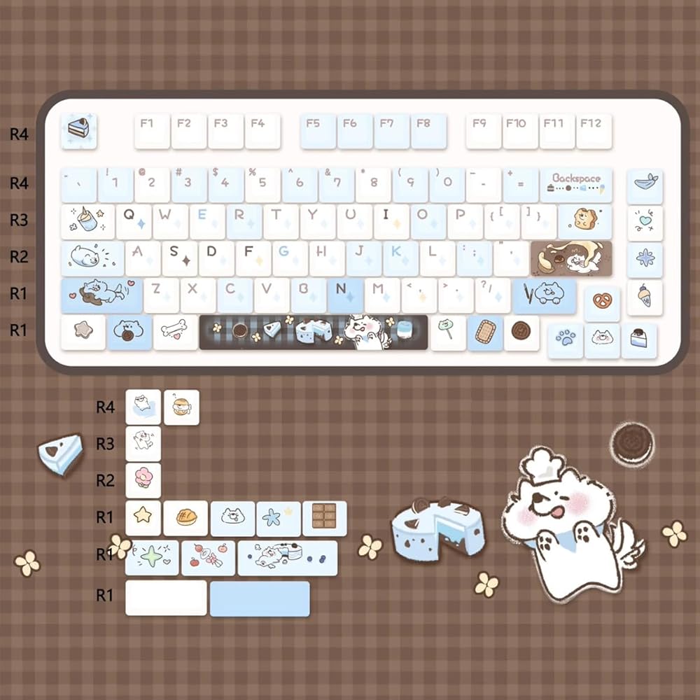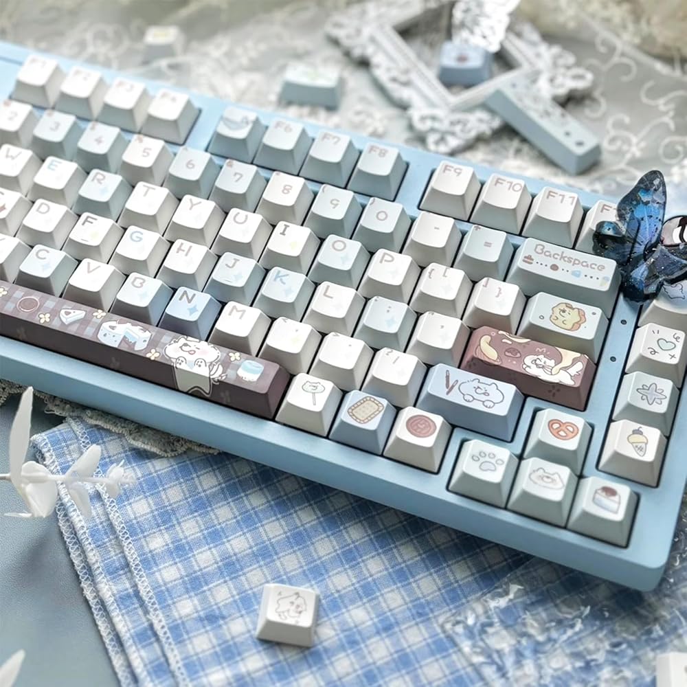PBT Keycaps ، مجموعة مفاتيح Keycaps Cute الكلب ، ملفات تعريف ملف تعريف الكرز المخصصة ، غطاء مفتاح لوحة المفاتيح الأبيض الأزرق ل Dye-Sub لـ 61/64/68/84/87 MX لوحة المفاتيح الميكانيكية (95Key)
