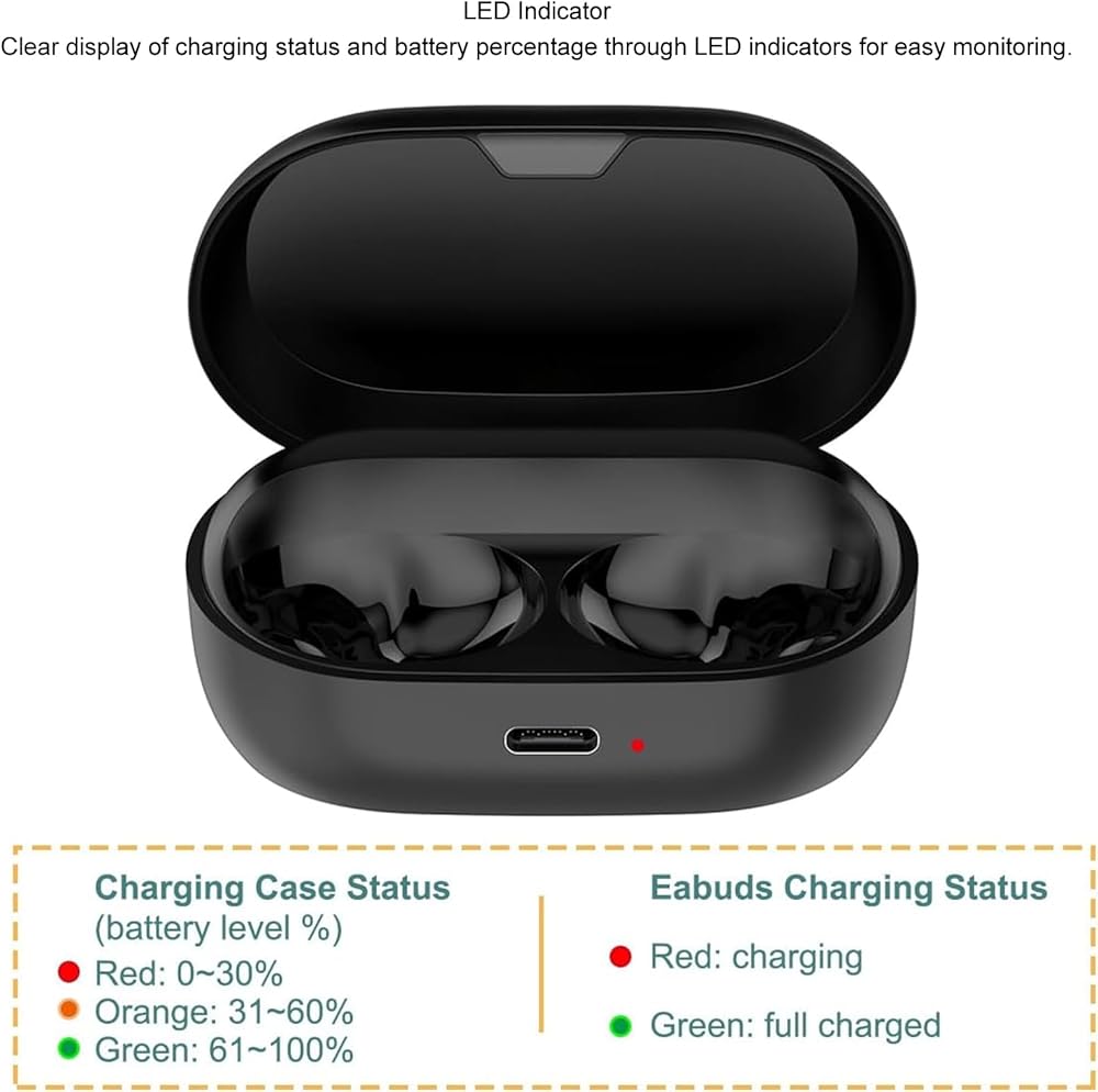 مؤشر LED: تعرض مؤشرات LED بوضوح حالة شحن سماعات الأذن وحالة الشحن ، الأحمر للشحن ، والأخضر للشحن الكامل. كما توفر معلومات النسبة المئوية للبطارية ، وميض أحمر إلى 30 ٪ ، أصفر من 30 إلى 80 ٪ ، من 80 إلى 100 ٪.