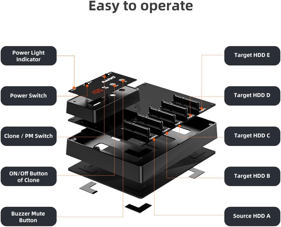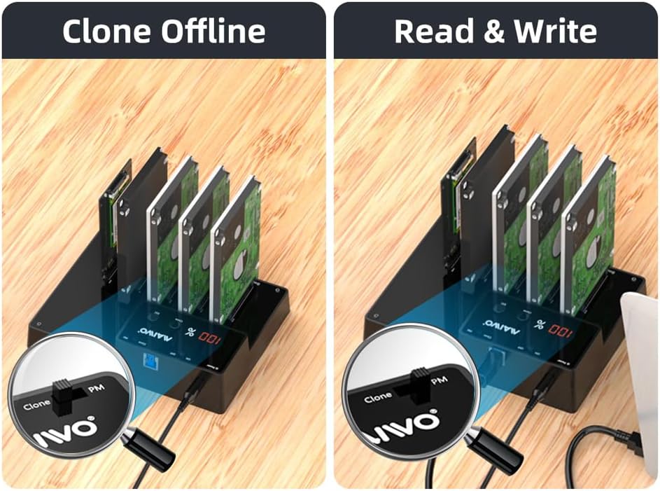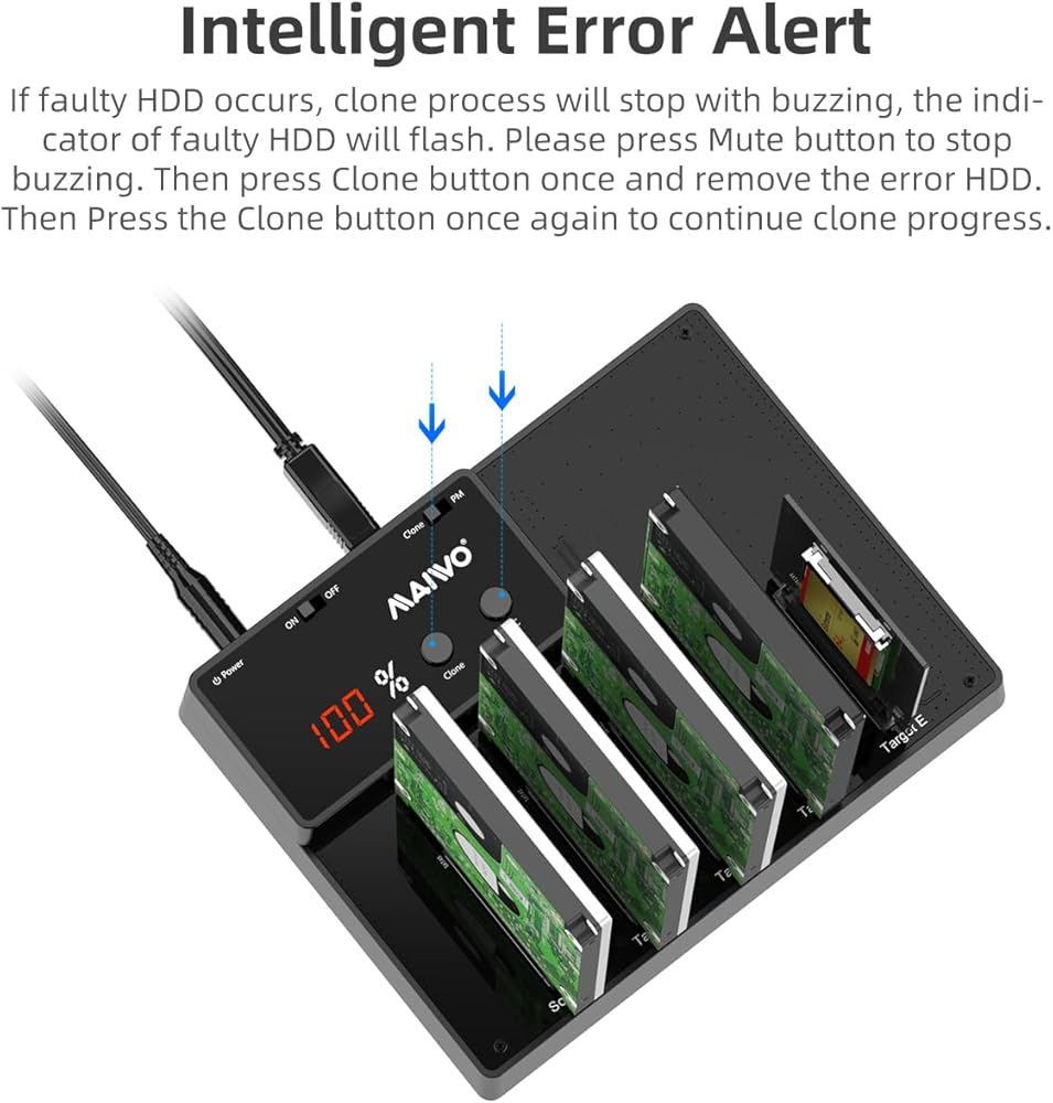 • يمكن لـ Supprt من 1 إلى 4 استنساخ غير متصل بالإنترنت ، الوصول إلى 5pcs من الأقراص الصلبة 6 تيرابايت في نفس الوقت ، وسعة 30 تيرابايت في المجموع.
