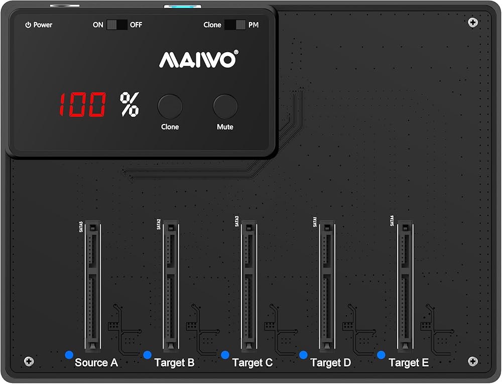 Maiwo 5 Bay Drive Docking Station لمدة 2.5 بوصة SATA SSD HDD مع 1: 4 وظيفة استنساخ 30TB سعة 12V 3A POWER OFF