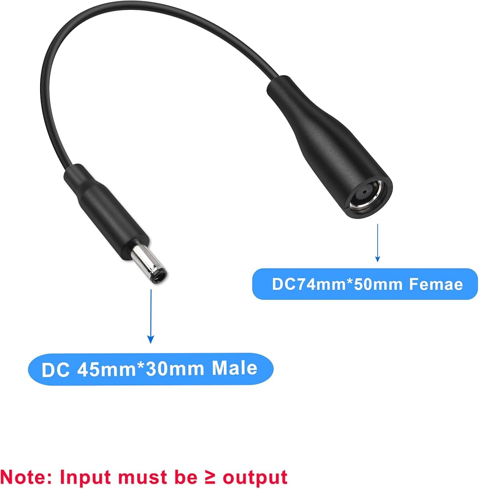 Note: Make sure the tip connector size of the DC adapter is the same size as you need before purchasing,DC7.4*5.0 mm to 4.5 x 30mm cables can only be used for charging, and do not support transferring data.