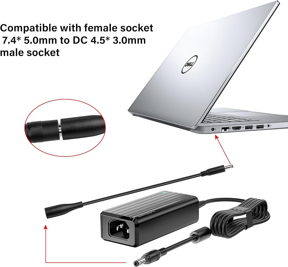 Suitable for converting 4.5*3.0 connector power adapter (charger) into 7.4*5.0mm power header in order to charge your DE-LL laptop.