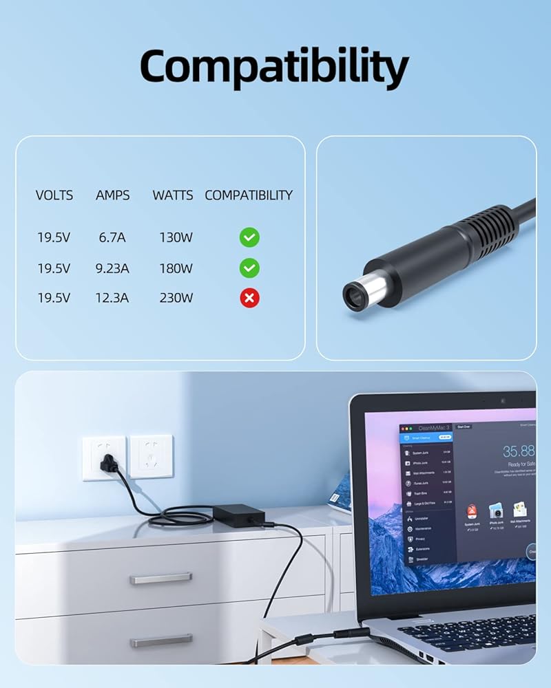 Fit for Dell Precision 3280 Compact D18U001 Laptop. [Do not buy if your laptop requires more than 9.23A].