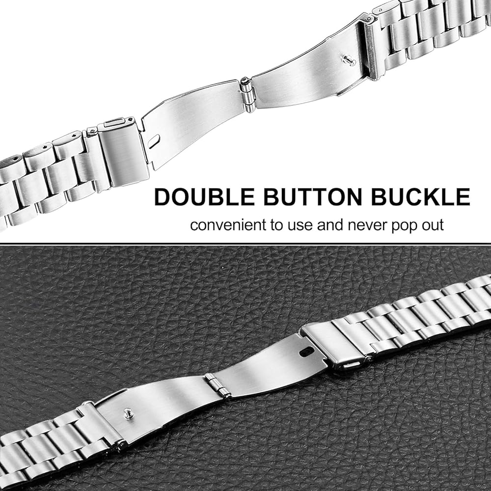 لا توجد فجوة من الفولاذ المقاوم للصدأ: مصنوعة من الفولاذ المقاوم للصدأ المتميز مع الانتهاء من الساتان الناعم ، لا تصميم الفجوة ، كلاسيكية ، متينة ومريحة. مزدوج زر الإبزيم ، من السهل فتحها وقفلها بحزم ، لا تظهر أبدًا.