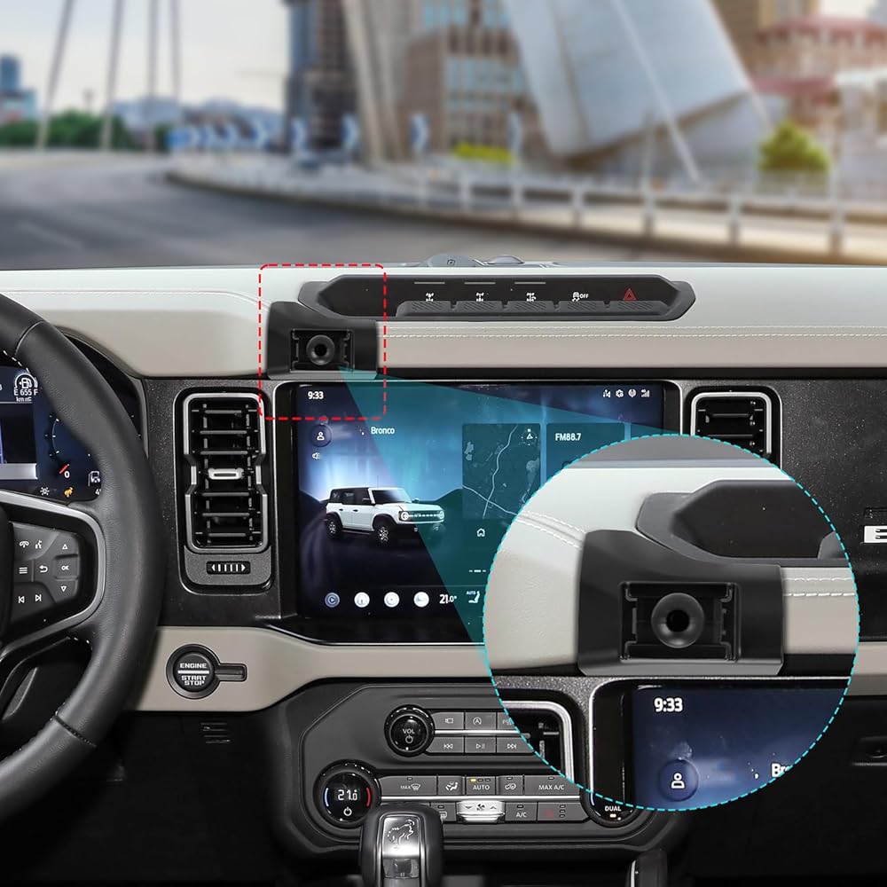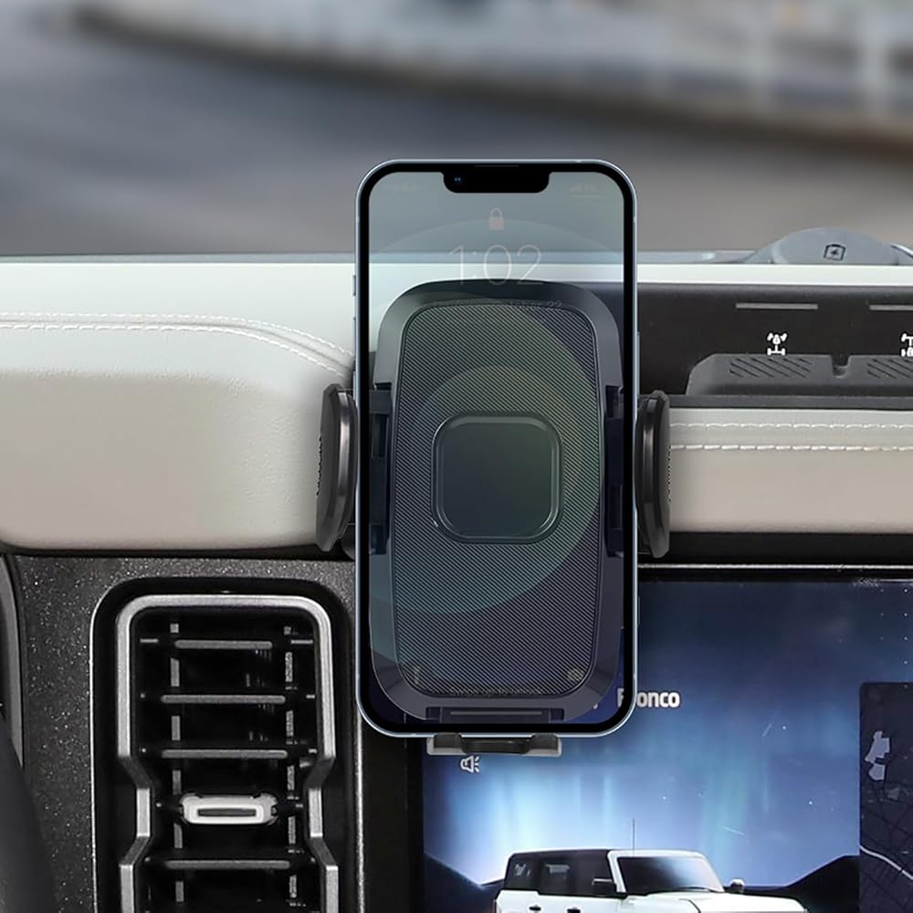 • 【ملاءمة مخصصة لـ Bronco】: يضمن حامل الهاتف المصمم خصيصًا قبضة صلبة على لوحة القيادة لفورد برونكو (2021-2024).