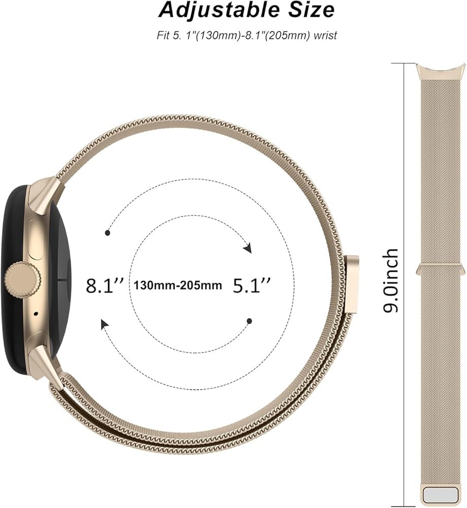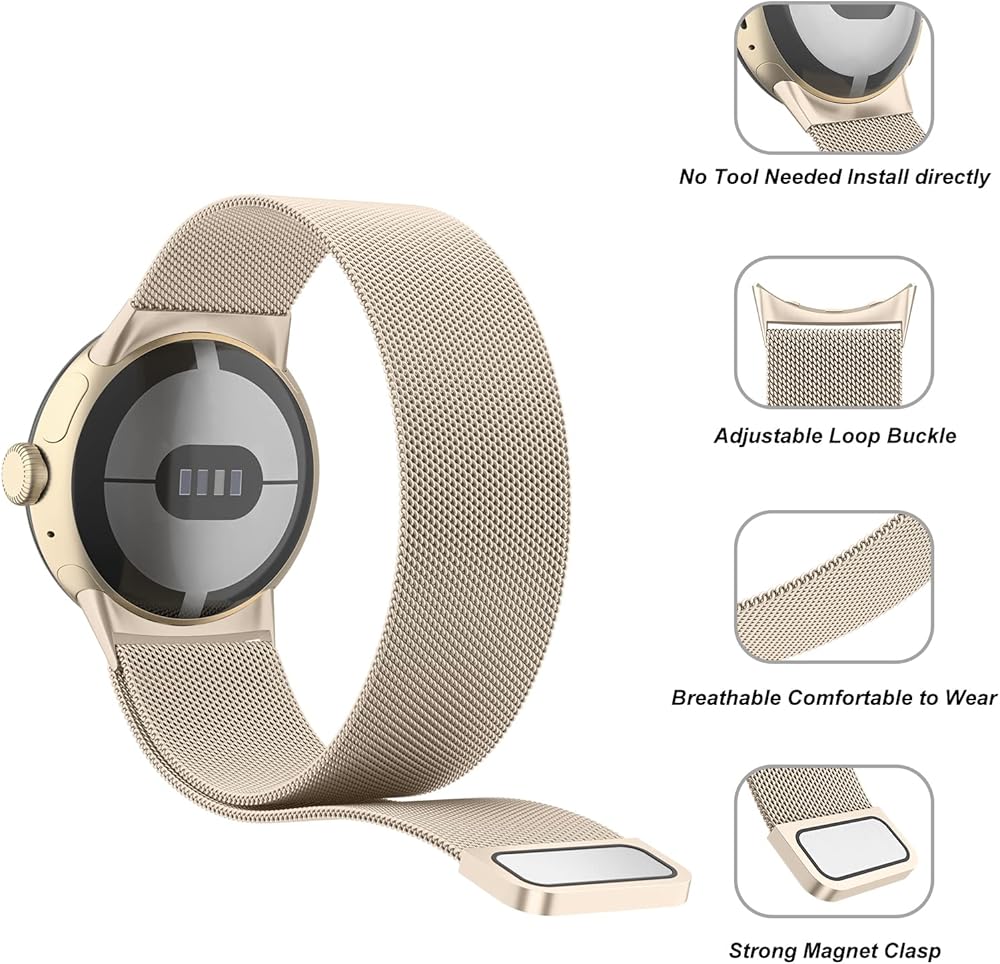 • 【Comfortable Material】This Google Pixel Watch 3 41mm band is made of fashionable & durable woven mesh stainless steel. Mesh Design makes this band more breathable and lightweight. It bring you a elegant and comfortable wearing experience, personalize your Google Pixel Watch 3 41mm.