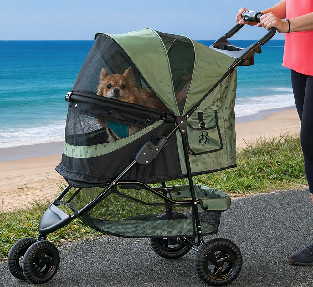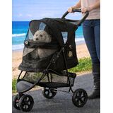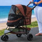 Our Special Edition NO-ZIP stroller features NO-ZIP technology meaning you can easily gain access to your pet without fumbling with difficult zippers! The Special Edition NO-ZIP stroller also features an elevated paw rest. Your pet can easily look out of the stroller by using the front bar for support. The new panoramic view window allows your pet to remain safe inside of the stroller without missing any sights while you stroll! New, lustrous material, featuring the Pet Gear monogram, ensures that your pet will be riding in style anywhere you go.