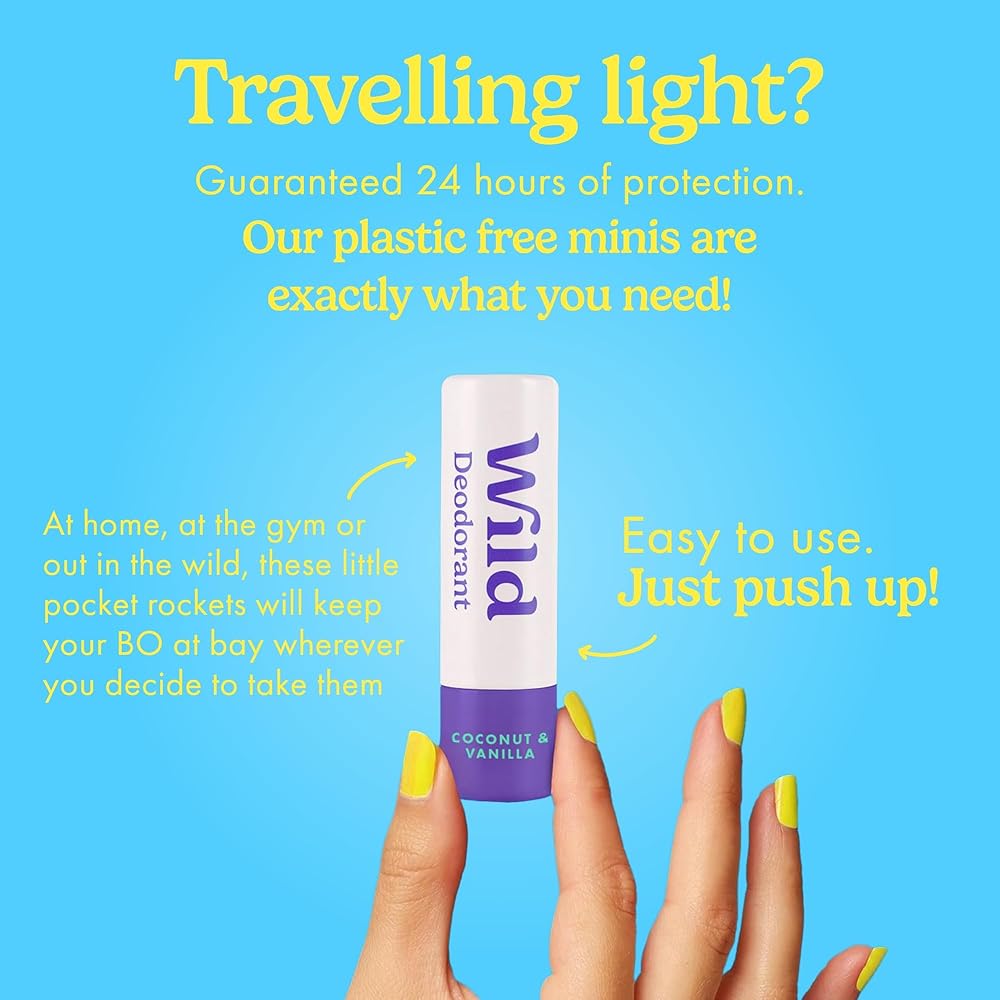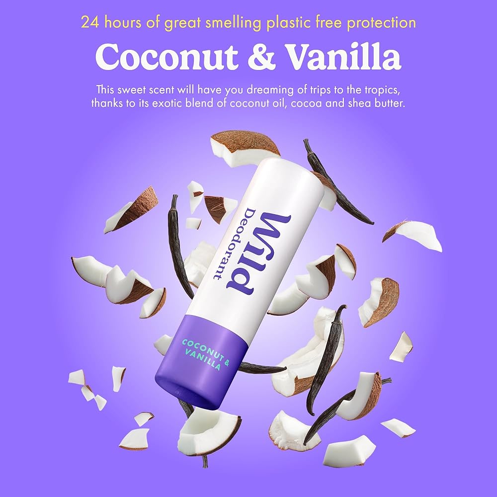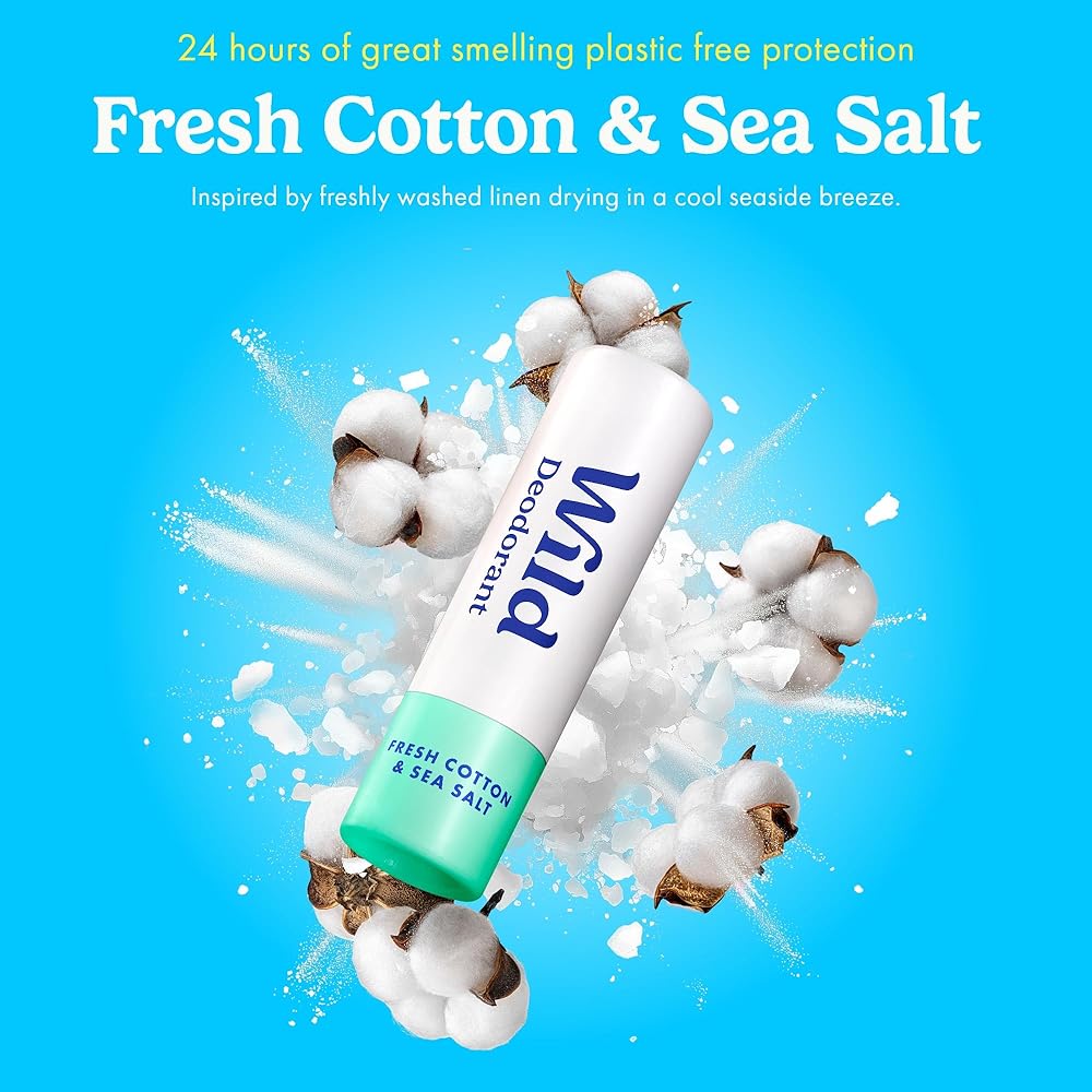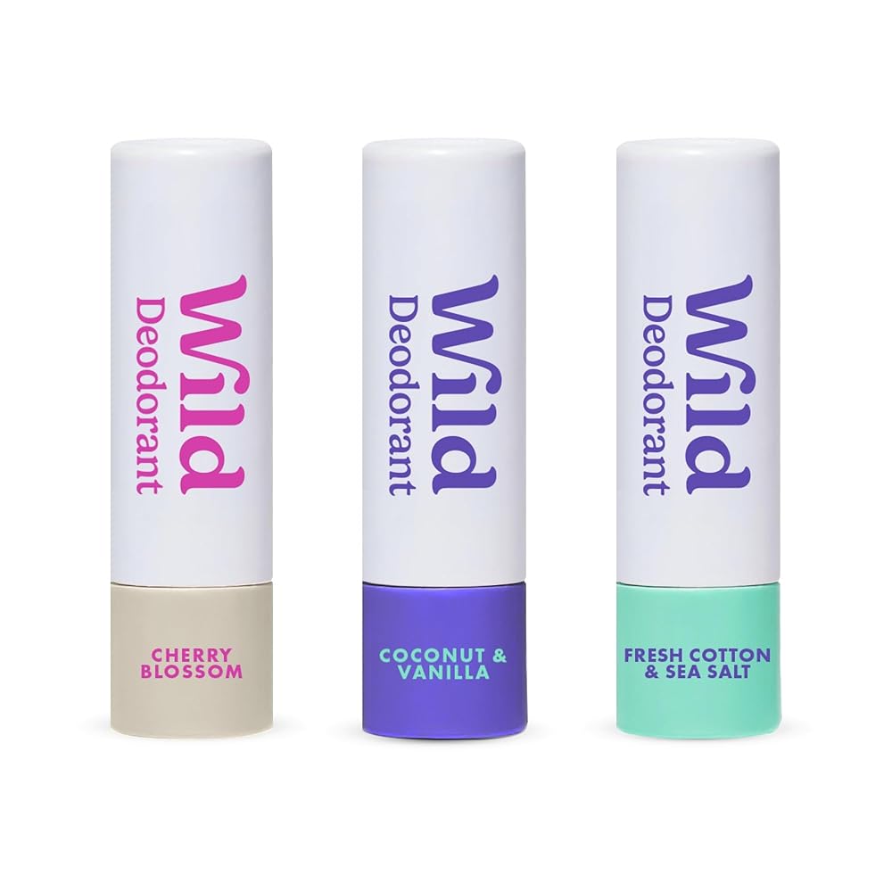 عبوة Wild مكونة من 3 مزيلات عرق صغيرة مصنوعة من القطن المنعش وملح البحر وجوز الهند والفانيليا وزهر الكرز - حجم تجريبي رائع لقضاء العطلات والسفر - خالي من الألومنيوم والبلاستيك - حماية طويلة الأمد