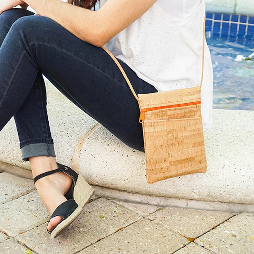 Elevate your style with our Handmade Mini Cork Crossbody Bag, thoughtfully designed for those who appreciate both sustainability and craftsmanship. Proudly made in the USA, this eco-friendly bag is crafted from soft, durable cork, offering a lightweight and water-resistant alternative to traditional materials. Perfectly sized to fit your cell phone, small wallet, and everyday essentials, this compact crossbody features one convenient outside pocket for quick access on the go. The adjustable strap allows for a comfortable, customizable fit, whether you're exploring the city or heading out for a casual day. With its minimalist design and natural appeal, this handcrafted cork crossbody bag is the ultimate blend of practicality and eco-conscious fashion.