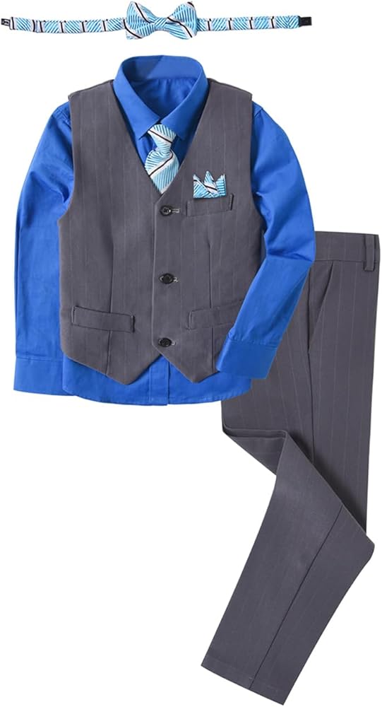 Classic 6 pieces boys outfit suits set,perfectly for formal,school uniforms and other special occasion like graduation,party,wedding,church,events and photo sessions.