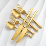 مجموعة الأدوات الفضية غير اللامعة مجموعة أدوات مسطحة ذهبية مع مقبض سداسي 20 قطعة 18/0 من الفولاذ المقاوم للصدأ مجموعة الأدوات الزفاف Housewarming هدايا لمدة 4 (Matt Gold)